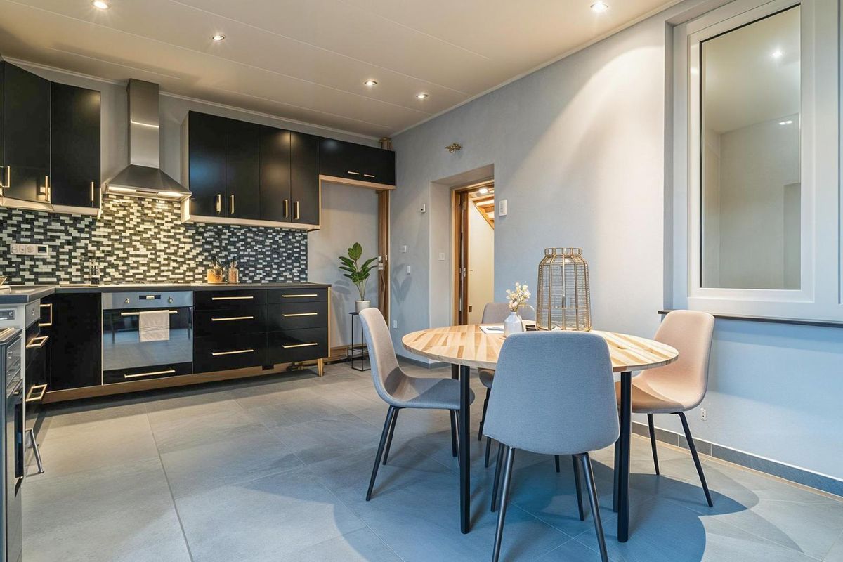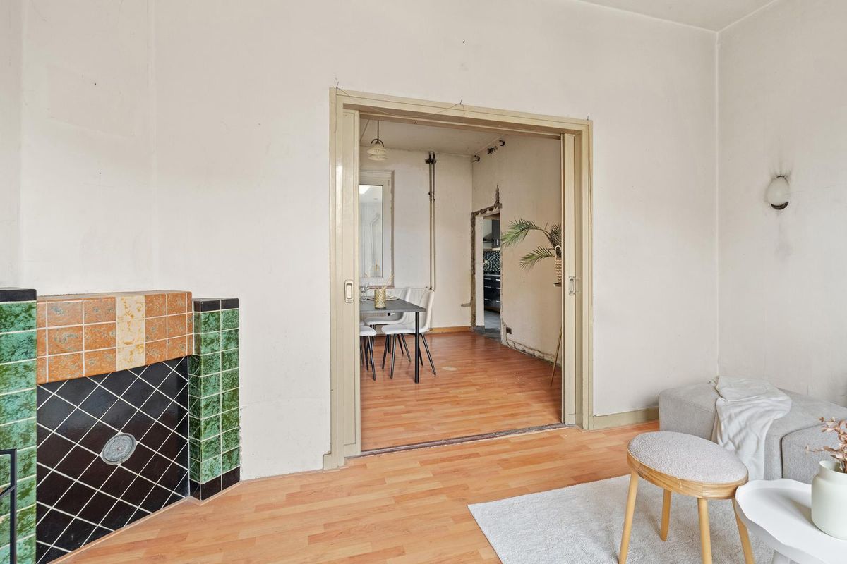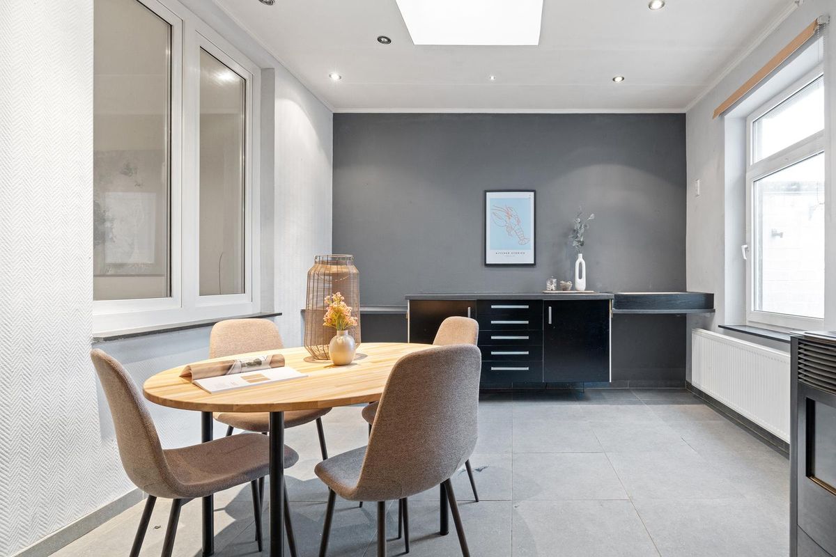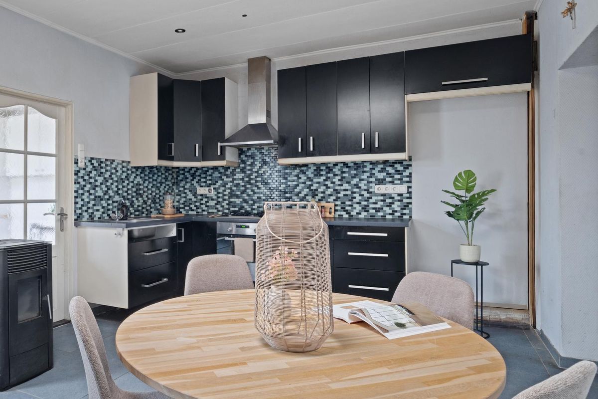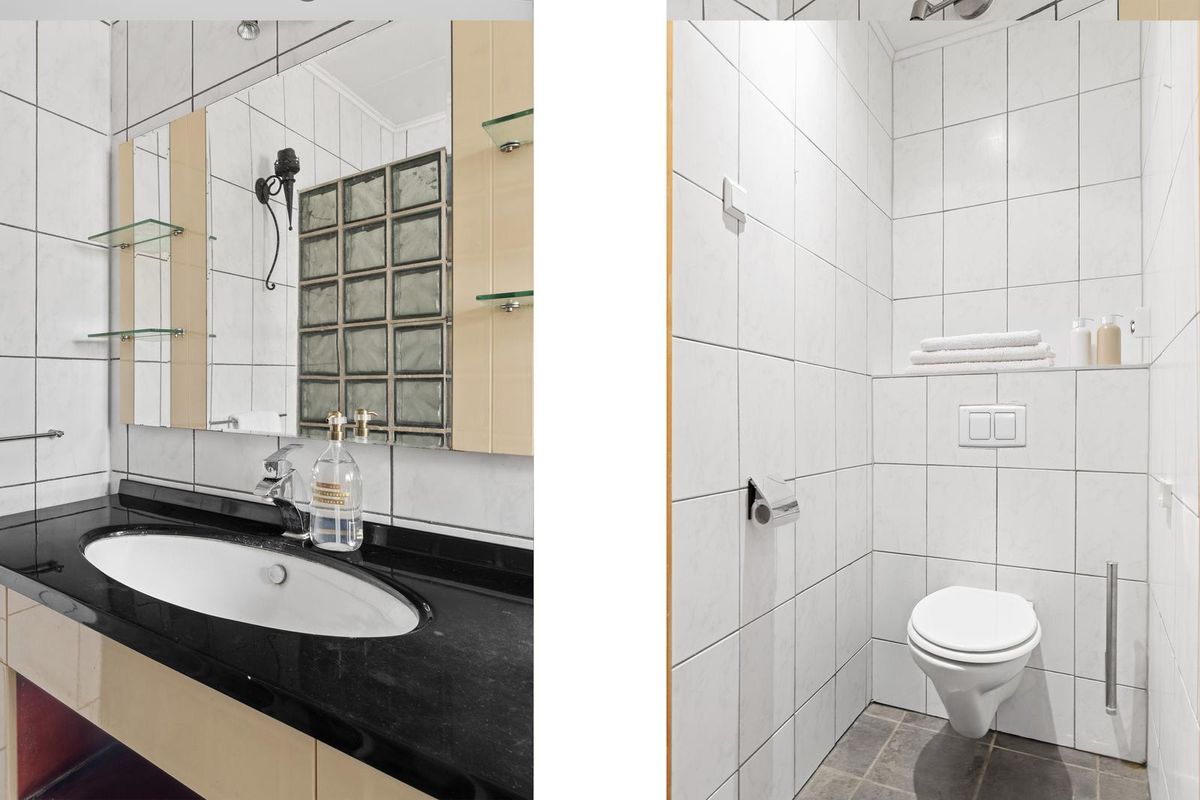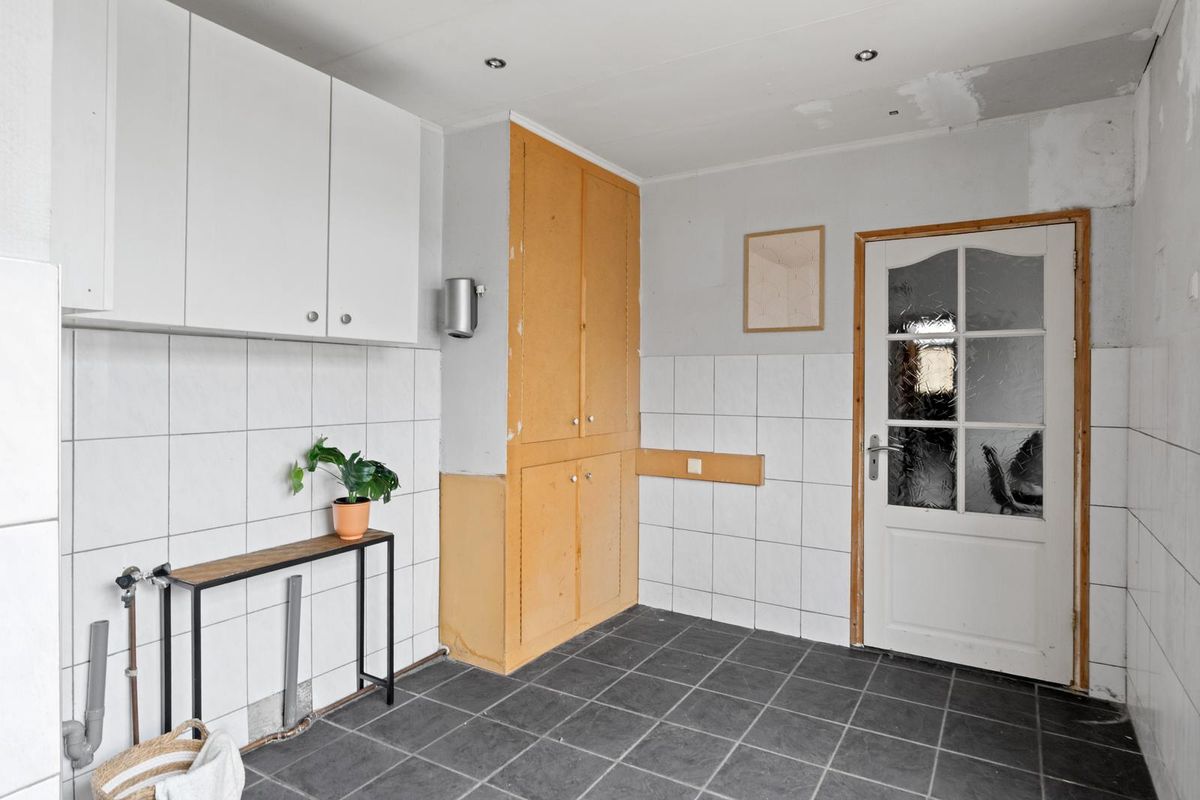 Aansluitend vind je de bijkeuken, die toegang geeft tot het apart toilet, de badkamer en de achterdeur.