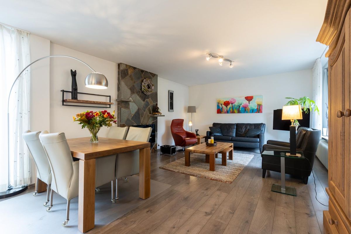 In de woonkamer en keuken ligt een fraaie laminaatvloer en is er een deur naar het overdekte terras.