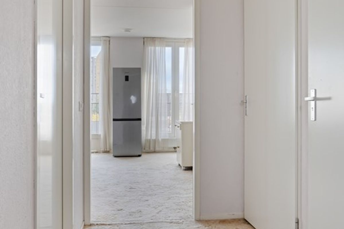 Bij binnenkomst valt direct de lichte en ruime woonkamer op, die dankzij grote ramen veel natuurlijk licht binnenlaat en een prachtig uitzicht biedt. De open keuken in hoekopstelling is modern en praktisch ingericht, met voldoende werk- en opbergruimte. Vanuit de woonkamer heb je toegang tot de slaapkamer, de badkamer met douchecabine en wastafelmeubel, het separate toilet en een praktische berging met wasmachineaansluiting en cv-installatie.