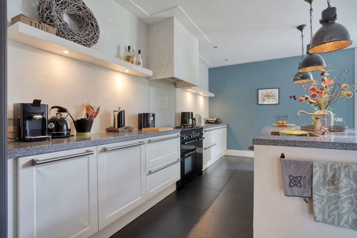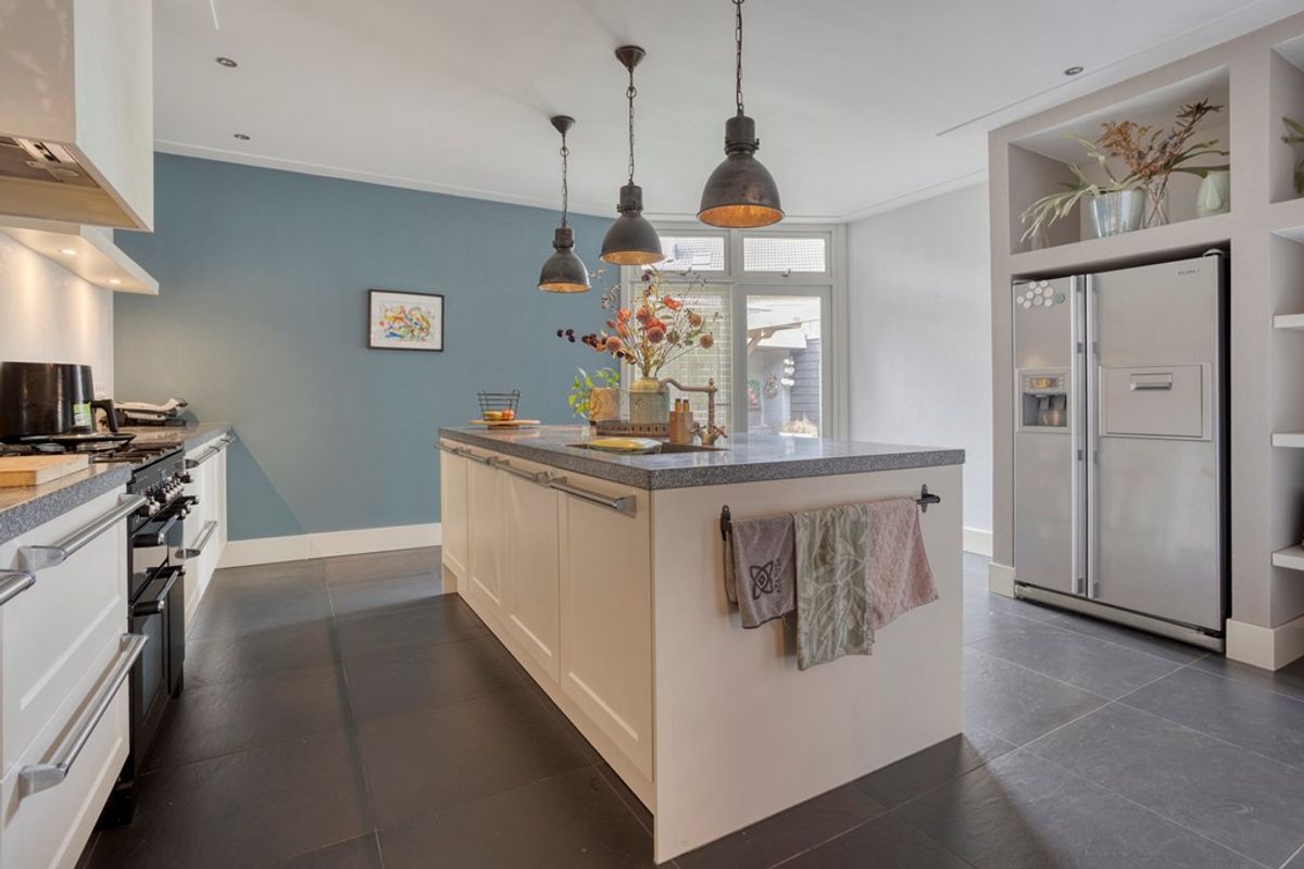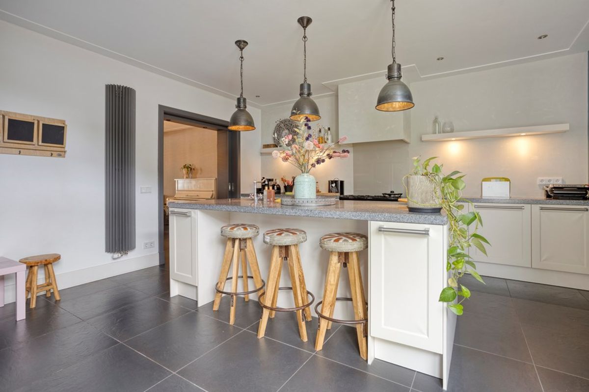 Deze charmante woning combineert karakteristieke details met modern wooncomfort. De ruime woonkamer met tegelvloer en strakke afwerking loopt naadloos over in de stijlvolle keuken, voorzien van een ruim spoeleiland en diverse inbouwapparatuur. Zowel de woonkamer als de keuken zijn uitgerust met comfortabele vloerverwarming. Via de openslaande deuren bereikt u de zonnige tuin met overkapping – dé plek om te genieten van het buitenleven.