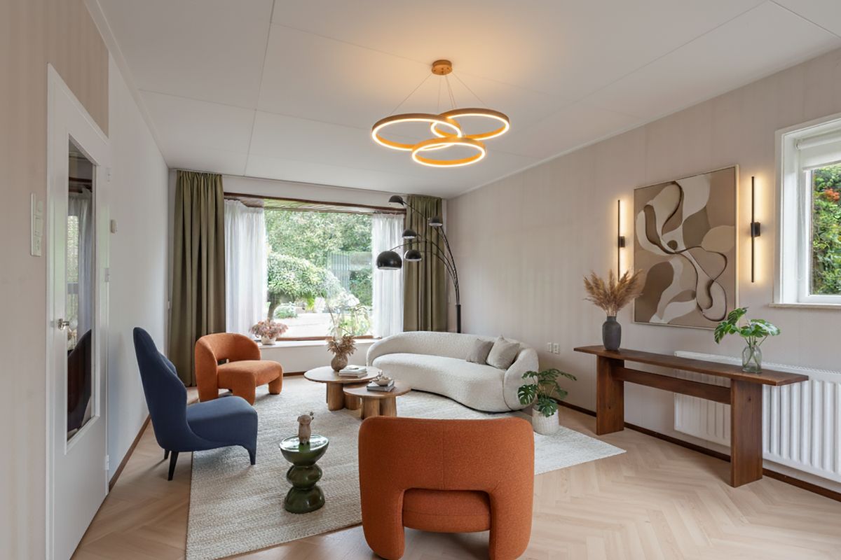 Lichte doorzon woonkamer (ca. 7.18 x 3.79m) met erker aan de voorzijde. Leuk detail is het zijraam.