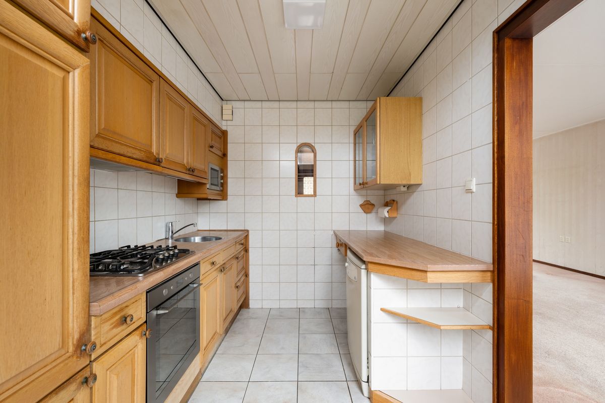 Gesloten keuken (ca. 2.93 x 2.21m) met eiken houten keukeninrichting.