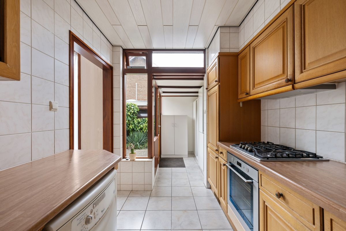 Bijkeuken (ca. 2.24 x 1.62m) met deur naar de tuin.