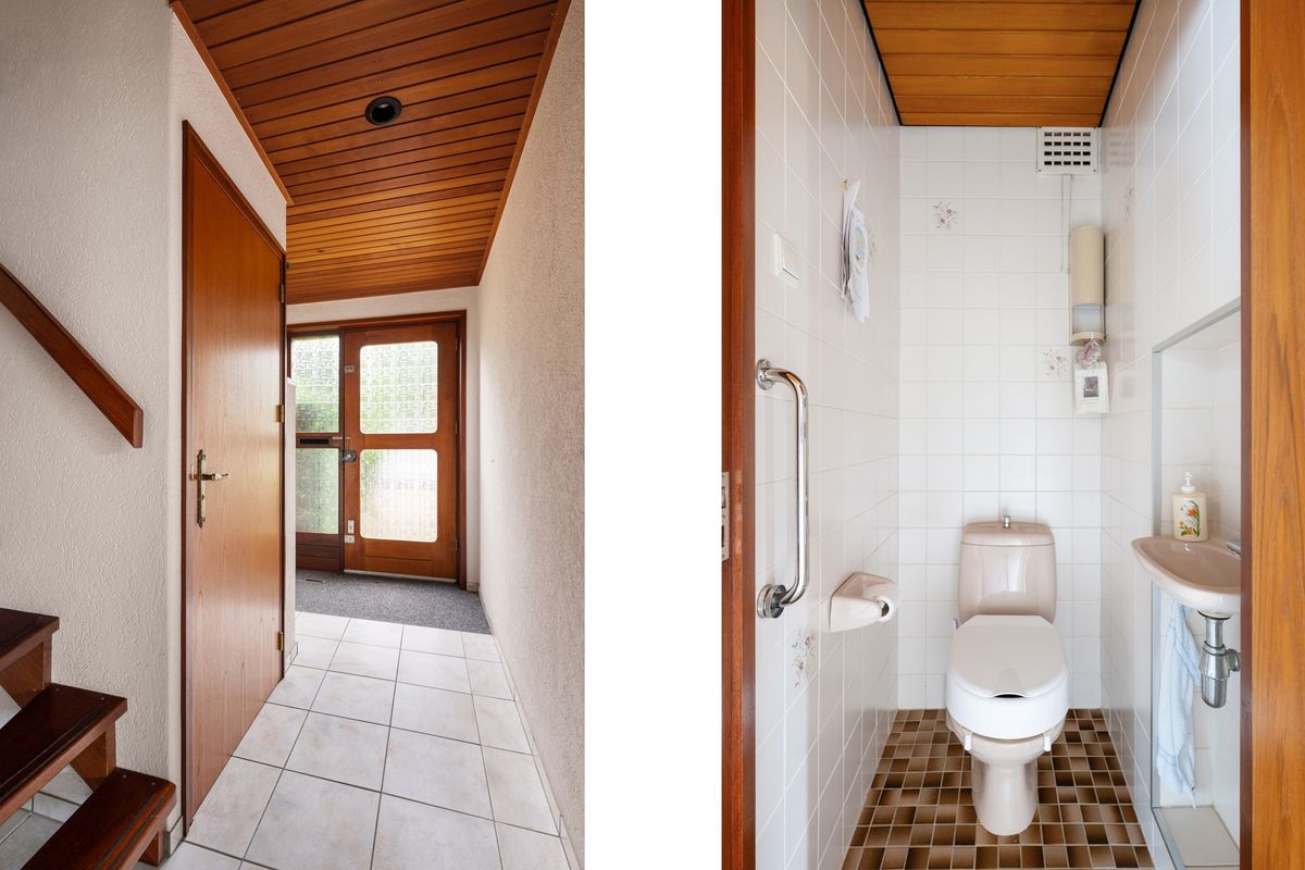Entree, gang met meterkast, toilet en trap naar de verdieping.