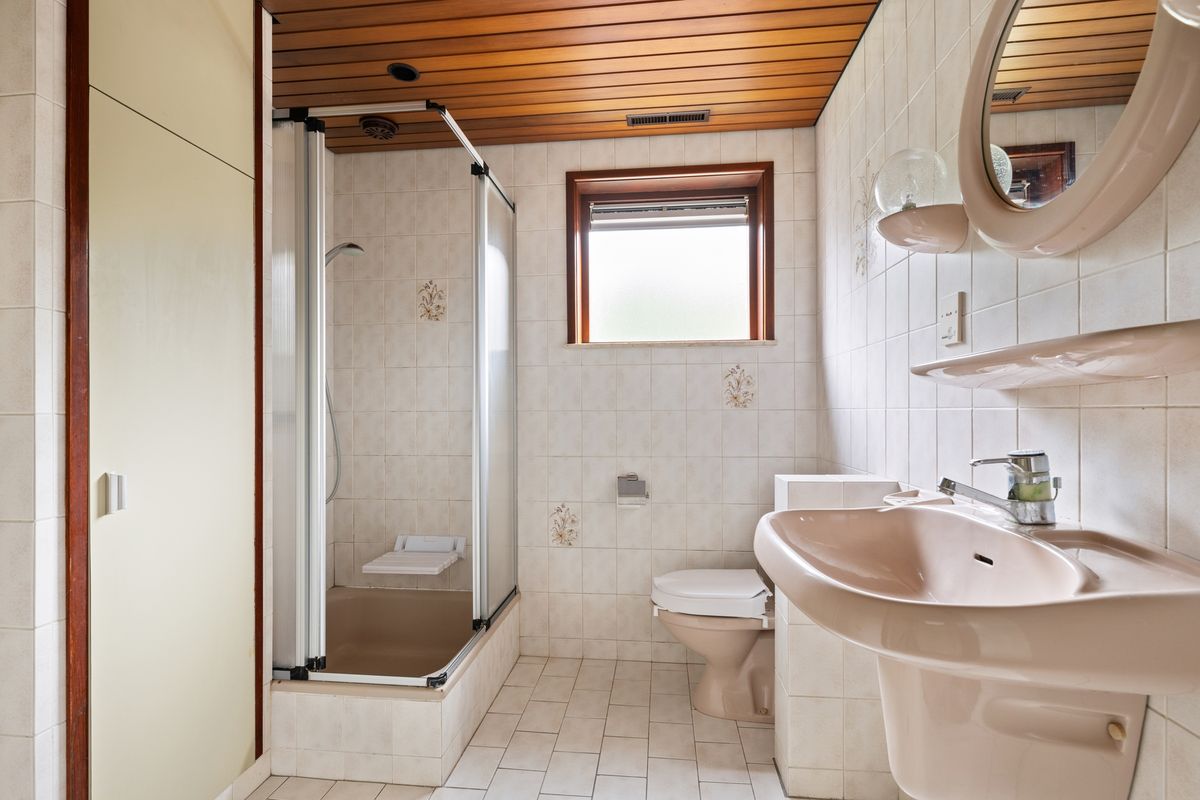 Met douchecabine, wastafel en toilet. Aansluiting voor de wasmachine.