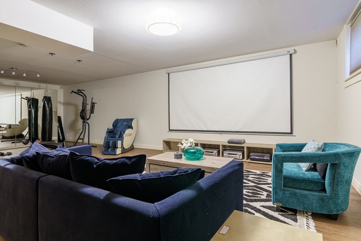 Deze ruimte in het souterrain is multifunctioneel Met een prachtige pvc-vloer, vloerverwarming, schuurwerk, wanden, en een spuitwerk plafond, is het de perfecte aanvulling op jouw huis. Je eigen sport- of ontspanningsruimte en een bioscoop, gameroom. Wat wil je nog meer.