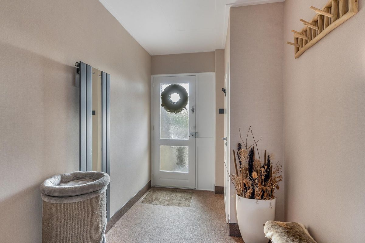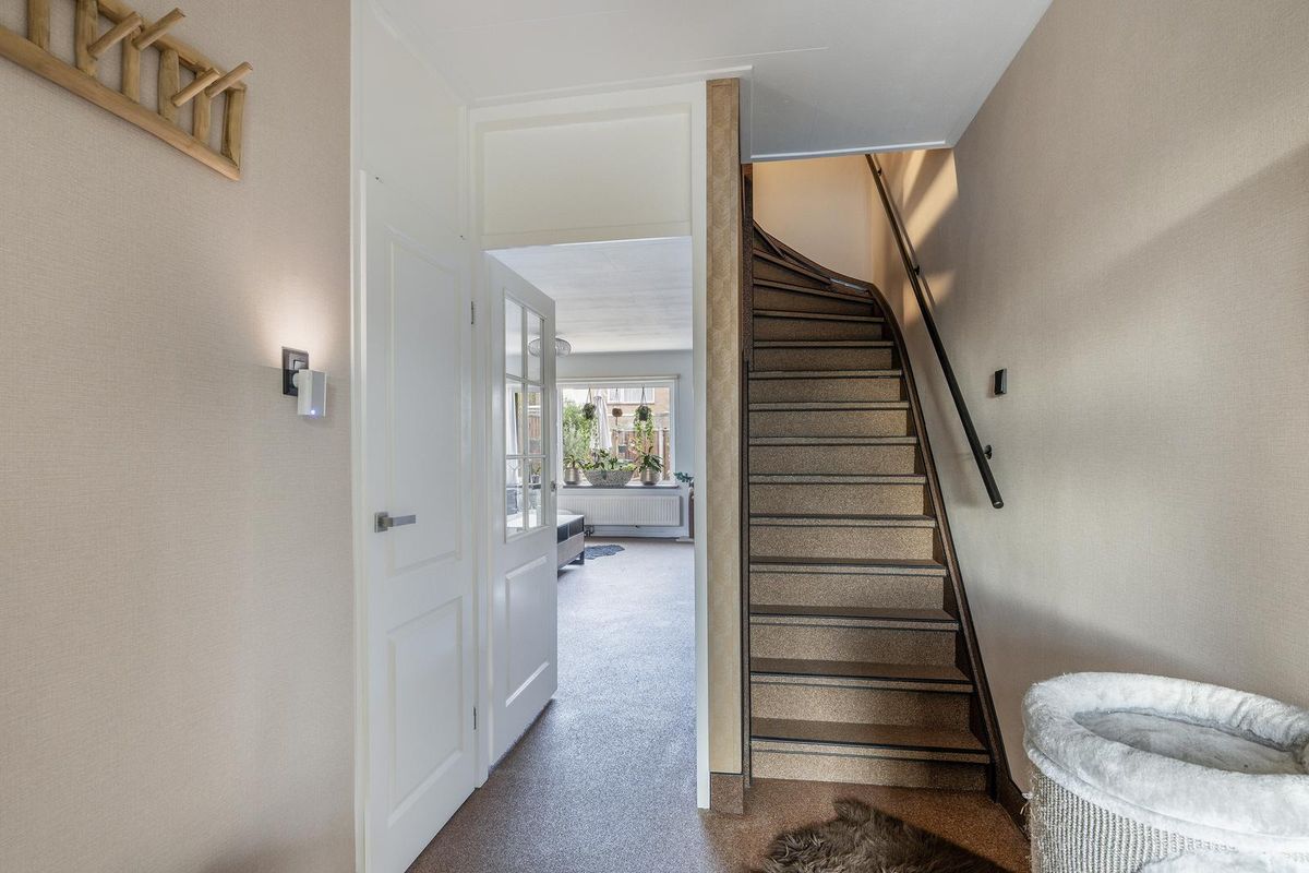 Hal/entree met de meterkast (6 groepen, kookgroep, aardlekschakelaar en slimme meters), het toilet (gedeeltelijk betegeld, hangcloset, fonteintje en valraampje), trapopgang en deur naar de woonkamer.