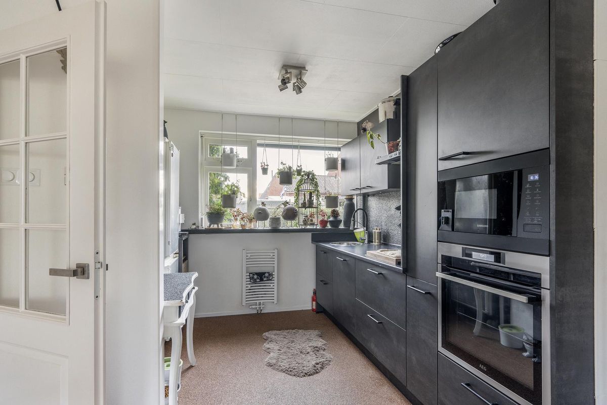 De keukeninrichting is in lengte-opstelling geplaatst en voorzien van een o.a. een inductiekookplaat, 4 pits inductiekookplaat, oven, magnetron, afzuigkap, vaatwasser en close-in boiler.