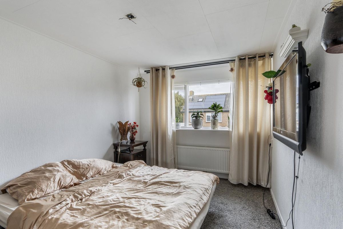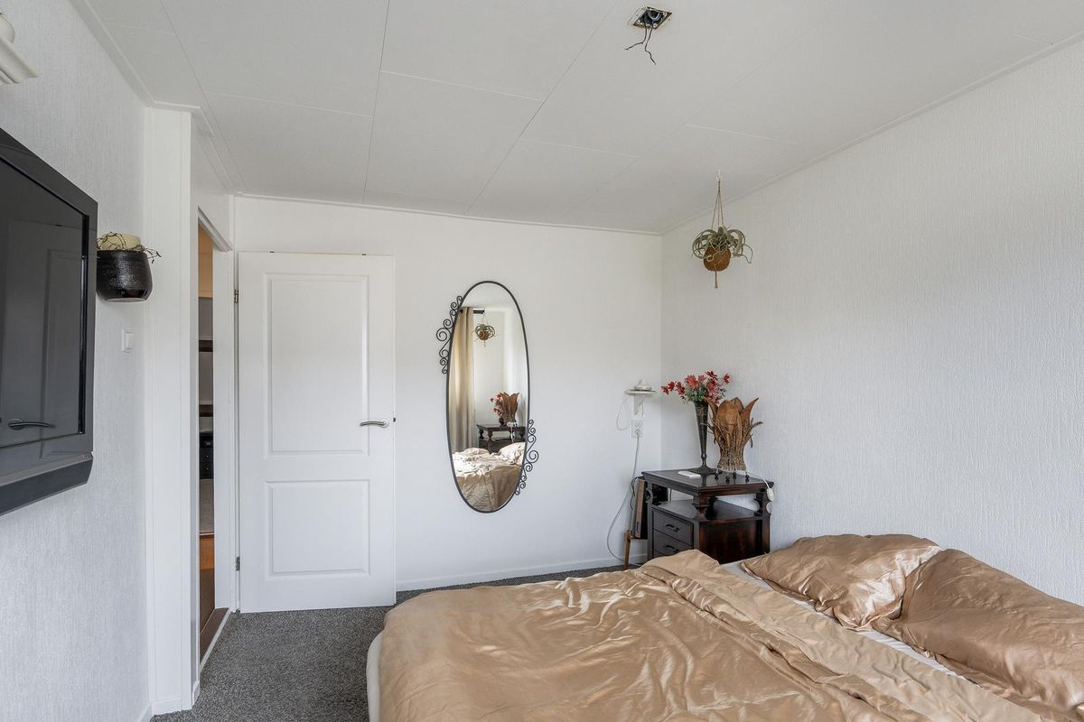 Aan de achterzijde liggen 2 slaapkamers; de grotere kamer heeft een tapijtvloer, de 2e kamer een gietvloer. De grote slaapkamer aan de voorzijde heeft eveneens tapijt. Alle slaapkamers hebben een rolluik.