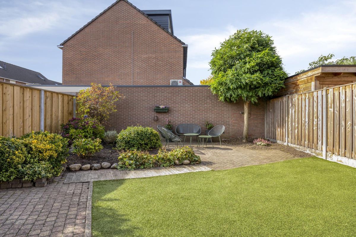 Buiten: De woning beschikt over een eigen oprit met plek voor meerdere auto’s en een ruime garage met berging. De achtertuin is netjes aangelegd, ligt op het zuidwesten, is onderhoudsvriendelijk en biedt veel privacy.