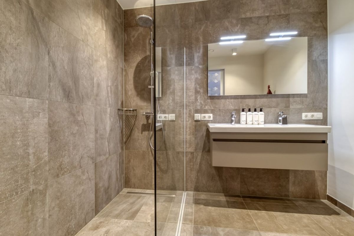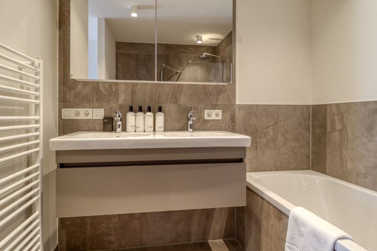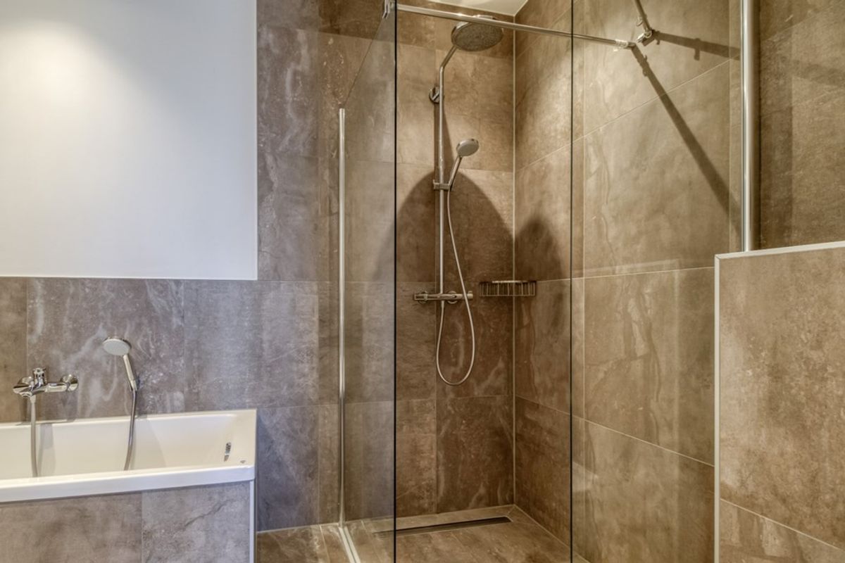 Er zijn 3 slaapkamers. De Masterbedroom heeft een badkamer ensuite met een dubbele wastafel, ligbad, inloopdouche en eigen toilet. De masterbedroom en de aangrenzende slaapkamer geven toegang tot het tweede balkon met zuidelijke ligging. De tweede badkamer is voorzien van inloopdouche, dubbele wastafel en toilet. Er is ook nog een separate toiletruimte met hangcloset en fonteintje. Voor de cv-ketel, wasmachine en droger is een ruime inpandige berging voorzien.