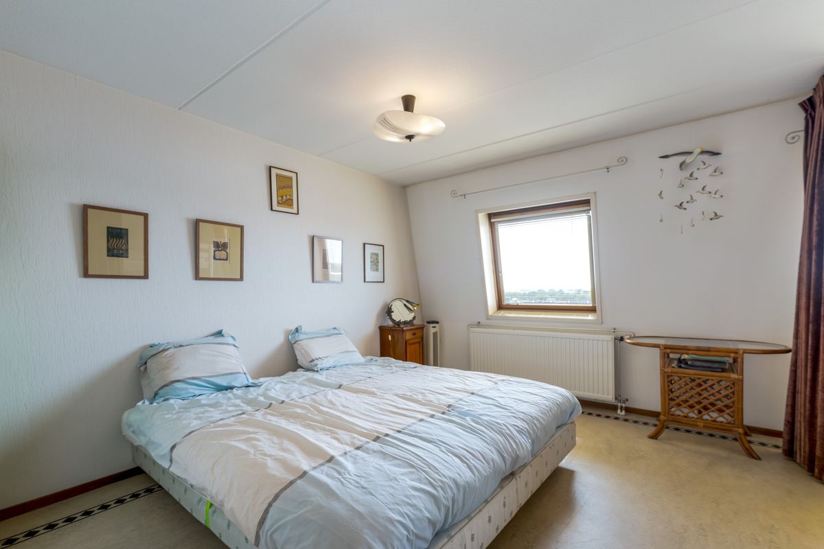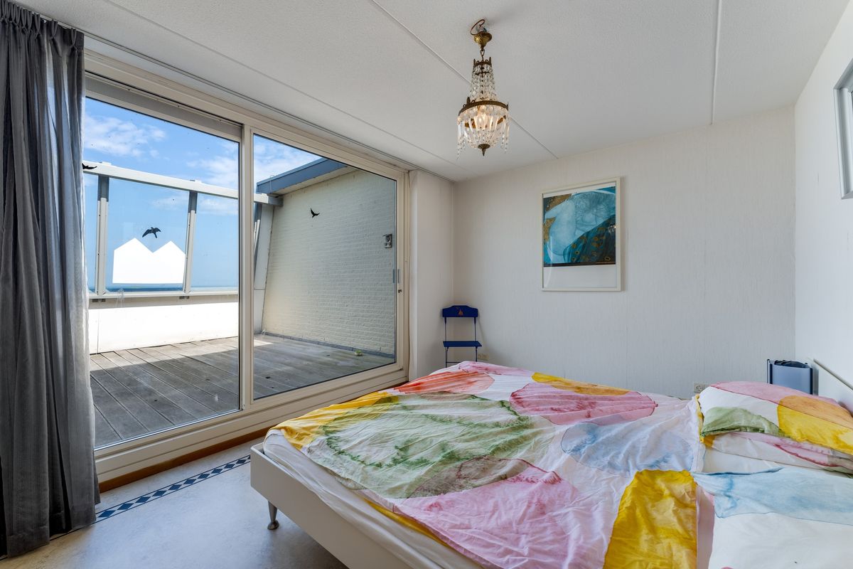 De derde slaapkamer heeft een schuifpui naar het royale dakterras. Dit terras is gesitueerd op het noord/noordoosten, wat zorgt voor rust, privacy en een fenomenaal uitzicht. Hier kun je ongestoord lezen, borrelen of simpelweg naar de horizon kijken terwijl zeilboten voorbijglijden.