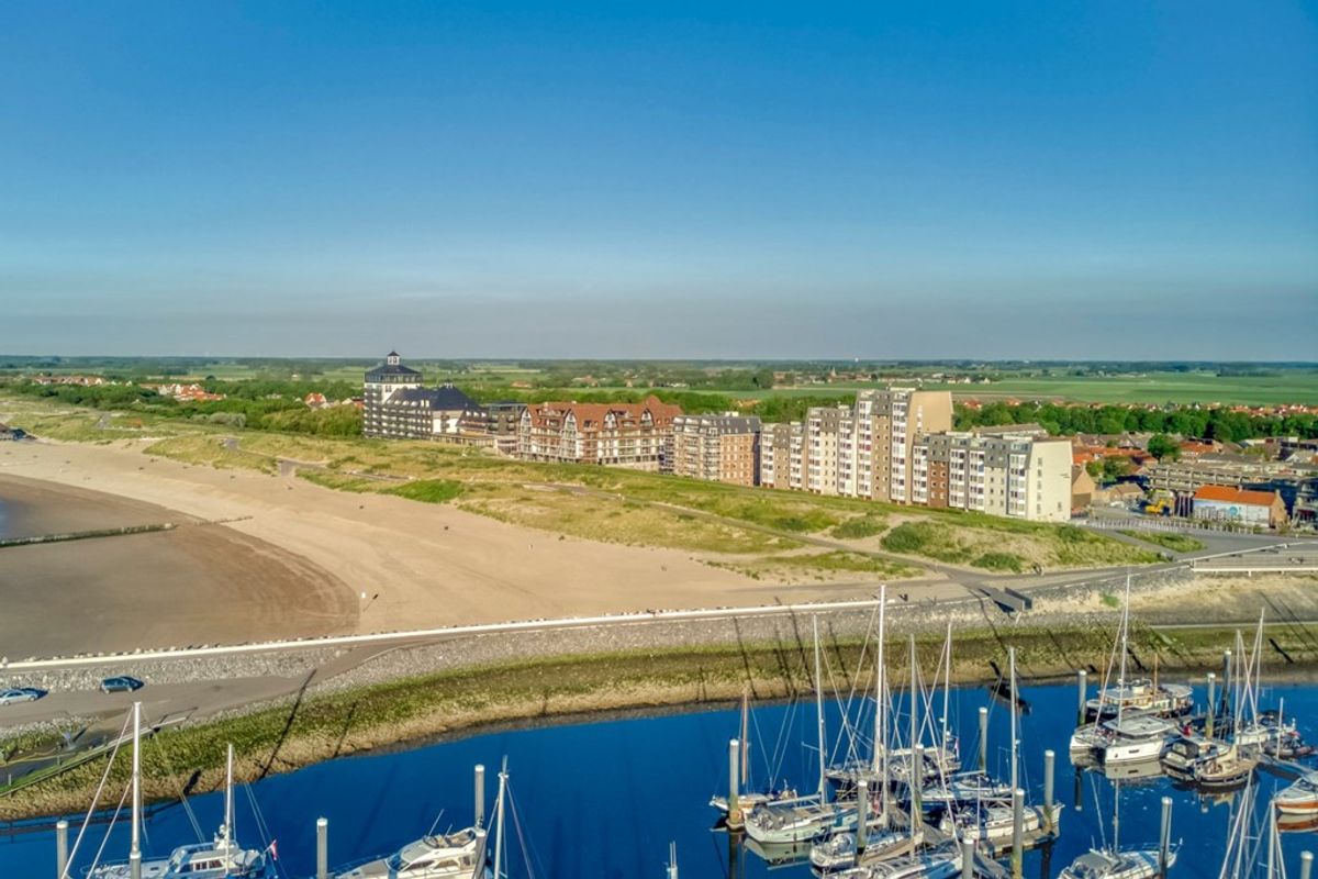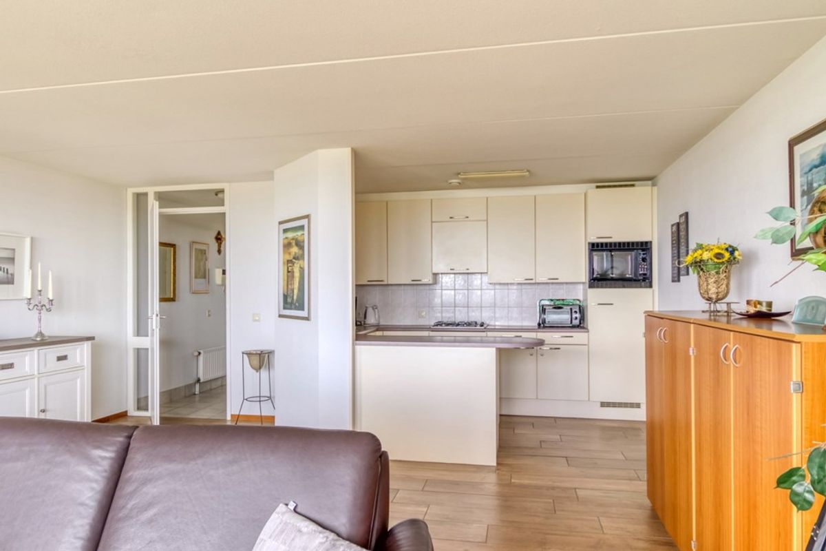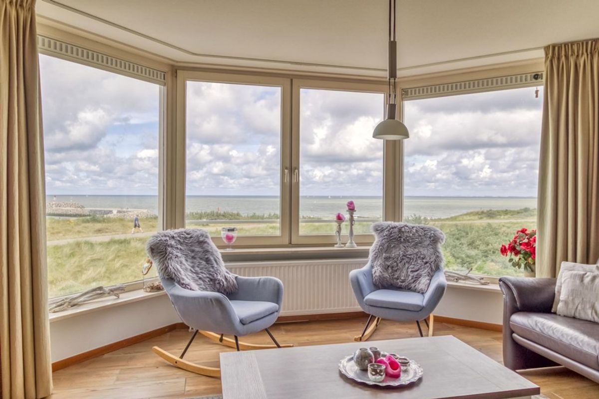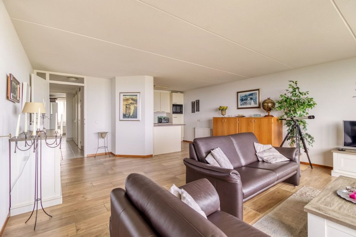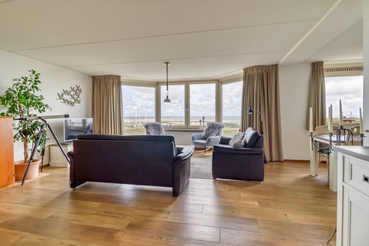 Als u de woonkamer binnenloopt ziet u al direct het mooie uitzicht welke het appartement biedt over strand, zee en de jachthaven.