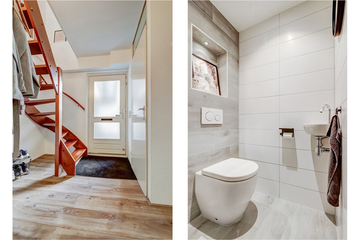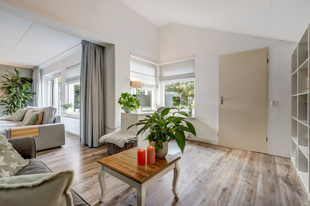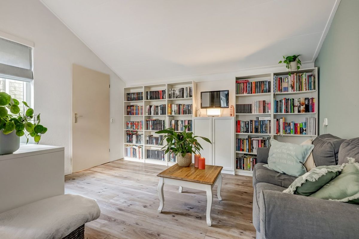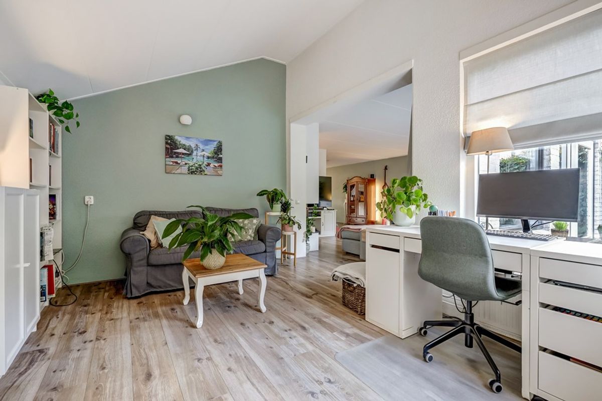 Entree/hal met meterkast, moderne toiletruimte (met fonteintje), trapopgang en toegang tot de woonkamer waar het woonplezier direct begint. De zeer royale living van ca. 53 m² voelt warm en sfeervol aan dankzij de houtkachel en de schuifpui richting de tuin. Doordat een deel van de garage bij de woonkamer is betrokken, is een tweede zithoek ontstaan – ideaal voor een speelplek voor de kinderen, een leeshoek of een comfortabele thuiswerkplek. Aansluitend bevindt zich een hobby-/werkkamer met vliering en een deur naar de achtertuin.