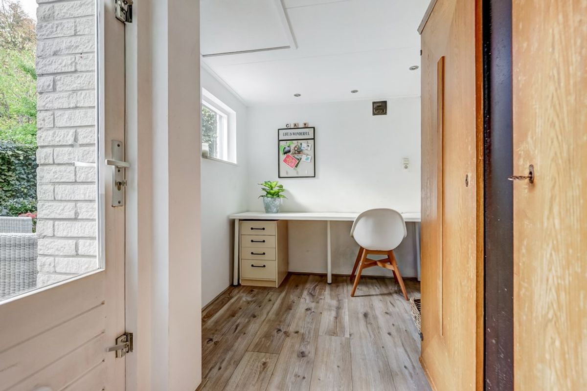 Bij binnenkomst op zolder valt direct de royale dakkapel/dakopbouw op die in 2024 volledig is vernieuwd aan de buitenzijde met onderhoudsarm keralit. Links bevindt zich een fijne werk-/hobbykamer met verwarming via radiator én infraroodpaneel. Aan de andere zijde ligt de ruime vierde slaapkamer van ca. 11 m². Ook op deze verdieping ligt laminaat. Daarnaast bevinden zich hier de hybride warmtepomp en de cv-installatie (netjes weggewerkt in een kast).