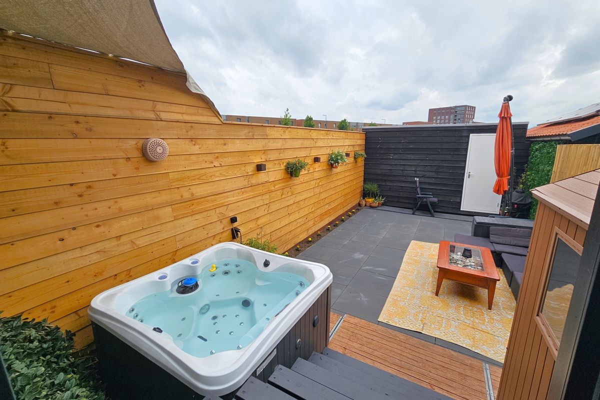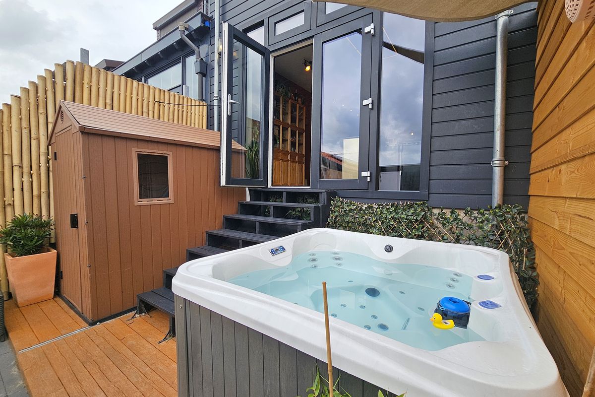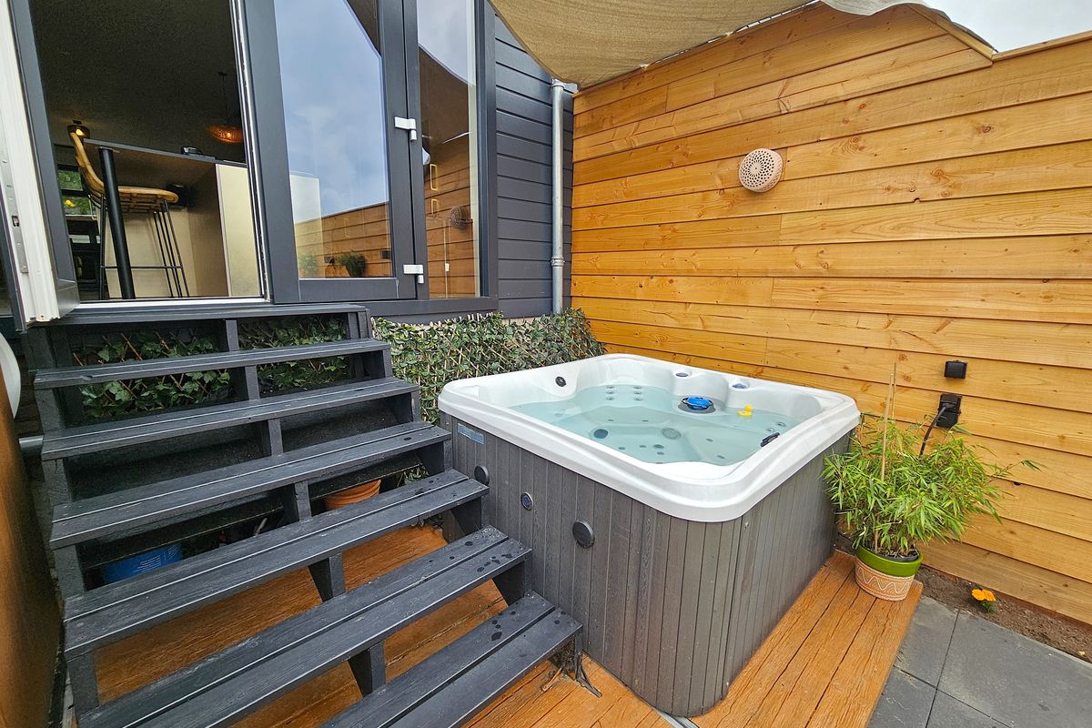 Binnenkomst in een nette hal met modern gastentoilet. De ruime, lichte woonkamer biedt volop leefruimte en sfeer. Aan de achterzijde vindt u een moderne open keuken met hoogwaardige inbouwapparatuur. Via openslaande deuren bereikt u de tuin met terras en jacuzzi – ideaal voor ontspanning.