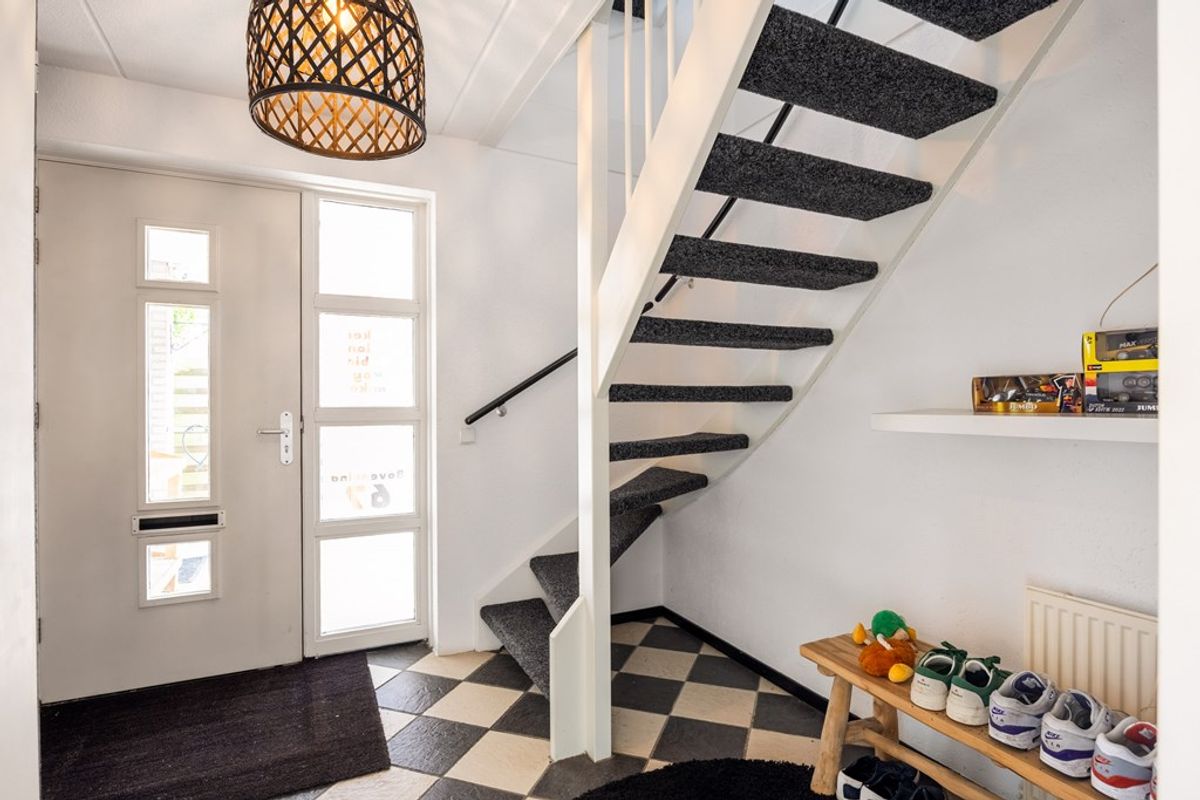 De achtertuin is onderhoudsvriendelijk ingericht met kunstgras en bestrating en beschikt over een houten berging en een buitenkraan. De tuin is bovendien ook via de voorzijde bereikbaar. De woning is voorzien van houten kozijnen en een kunststof dakkapel op zolder. Met energielabel B is het energieverbruik bovendien gunstig.