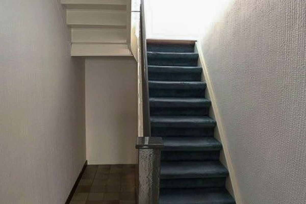 Entree met toegang tot het appartement en de trap naar de eerste