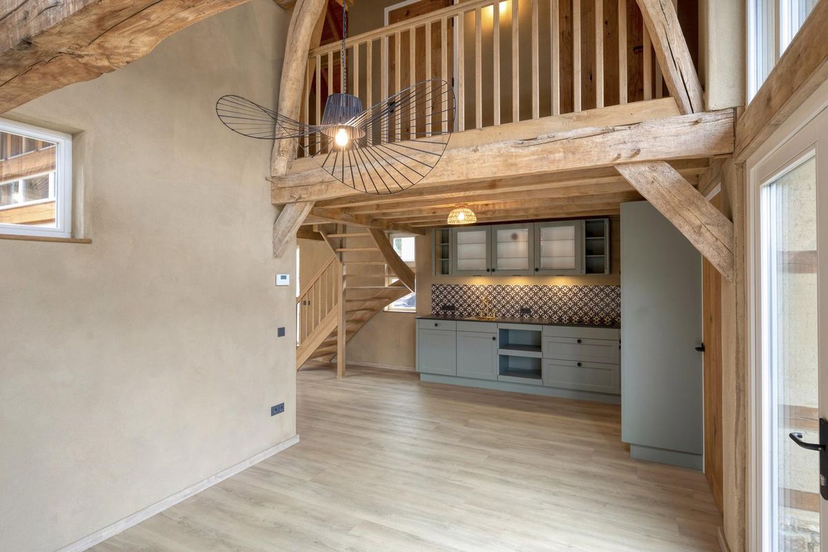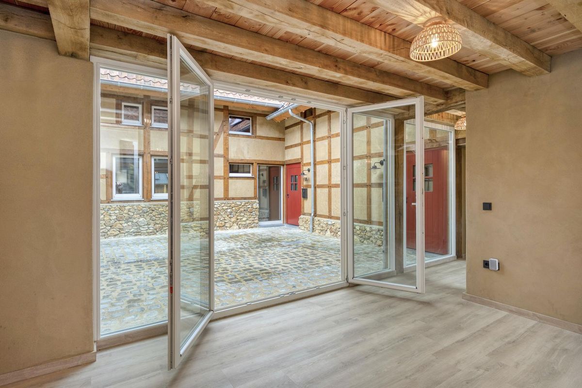Het oorspronkelijke bouwjaar is 1828 en in de afgelopen jaren is de hoeve volledig opnieuw opgetrokken met behoud van enkele originele balken, spanten en de vakwerkconstructie. De wanden zijn grotendeels afgewerkt met leemstuc, de geïsoleerde begane grondvloer is voorzien van vloerverwarming en de hardhouten kozijnen zijn uitgevoerd met triple glas. Een warmtepomp zorgt voor een aangename temperatuur en uiteraard zijn de gevels, net als het dak, voorzien van isolatie. Op het dak liggen 8 zonnepanelen, wat als geheel zorgt voor een lage energierekening.