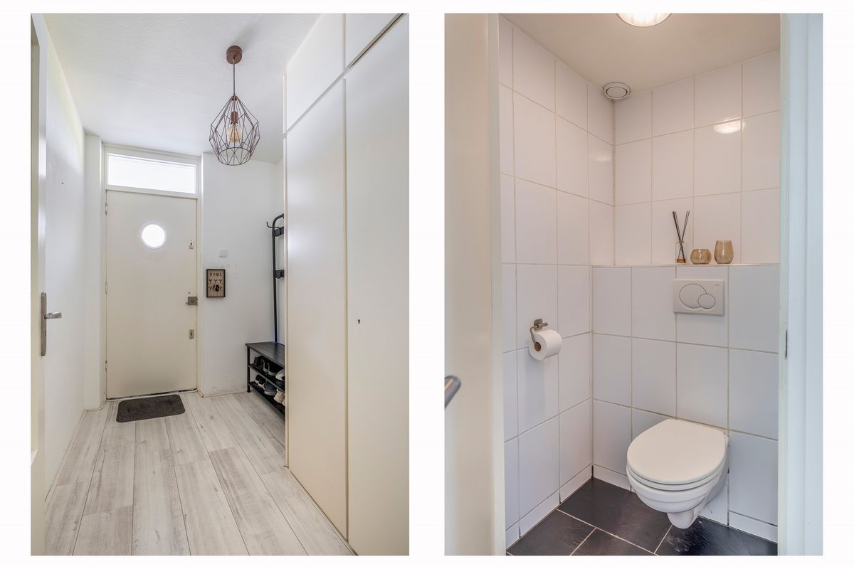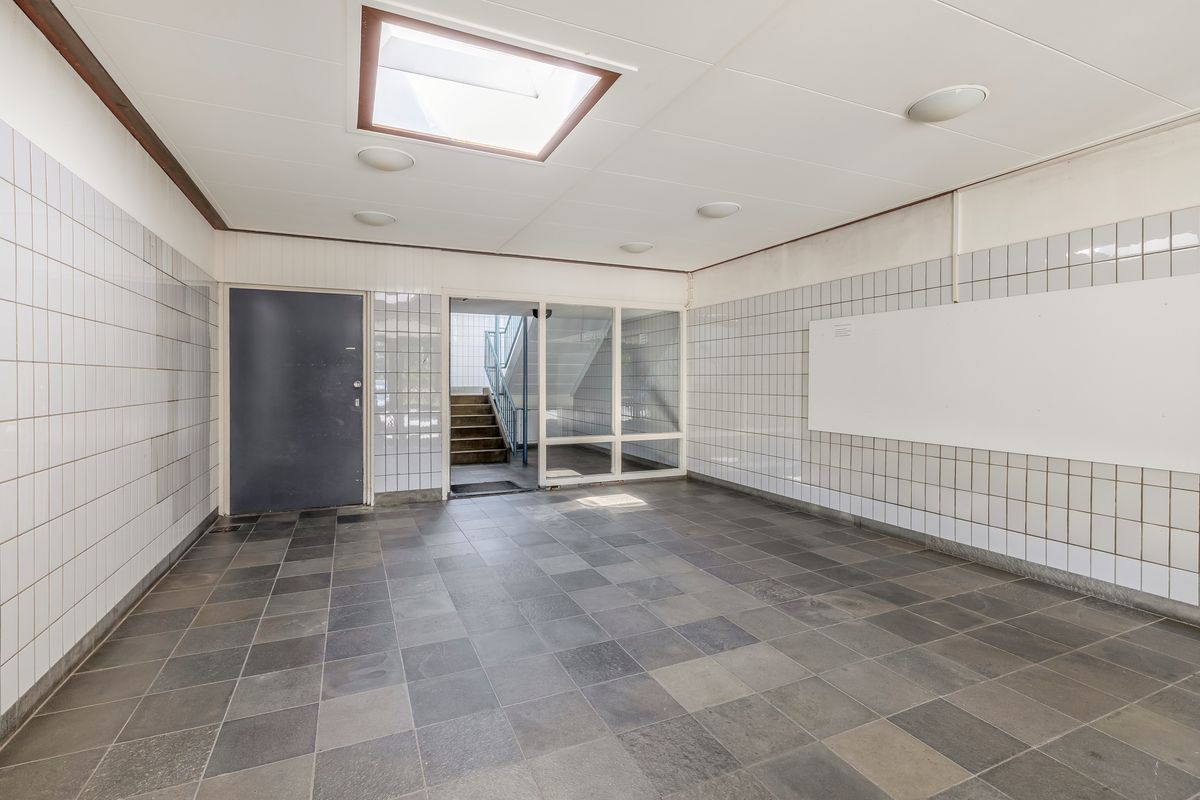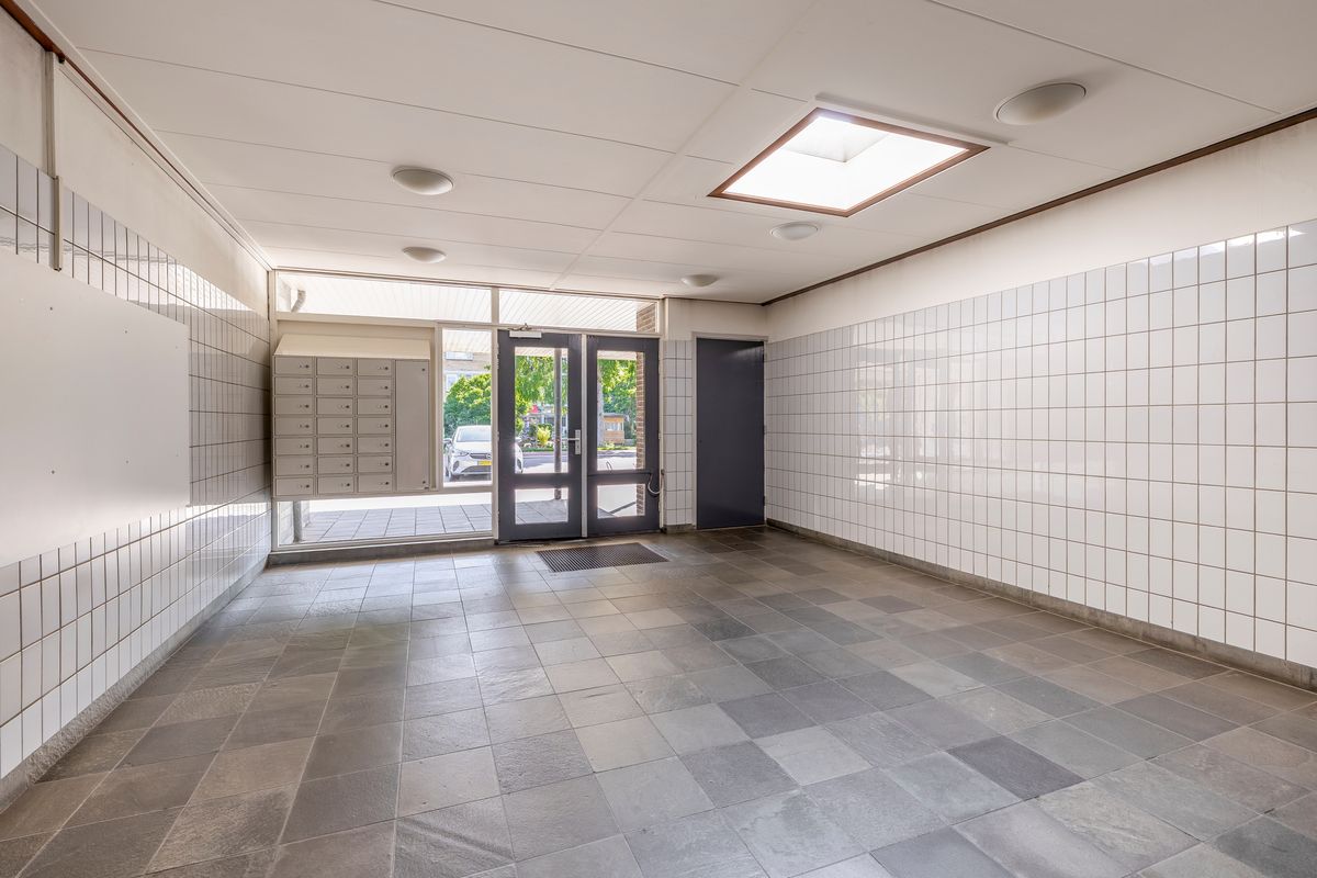 Het appartement bevindt zich op de eerste verdieping van een verzorgd complex boven de winkels. Bij binnenkomst tref je een gezamenlijke entree met brievenbussen, trapopgang en toegang tot de bergingen in de onderbouw. De algemene ruimten zijn netjes afgewerkt en voorzien van een tegelvloer en lichtkoepel, waardoor het geheel aangenaam licht oogt.