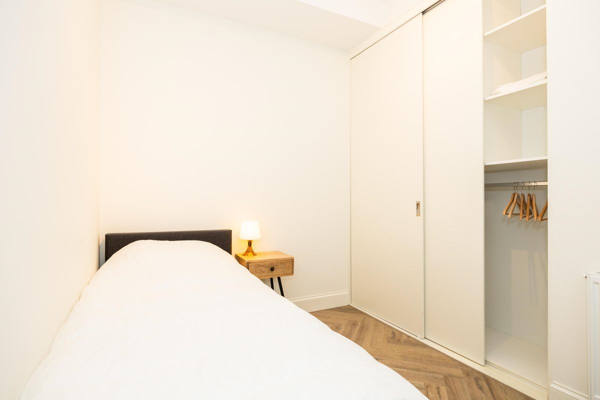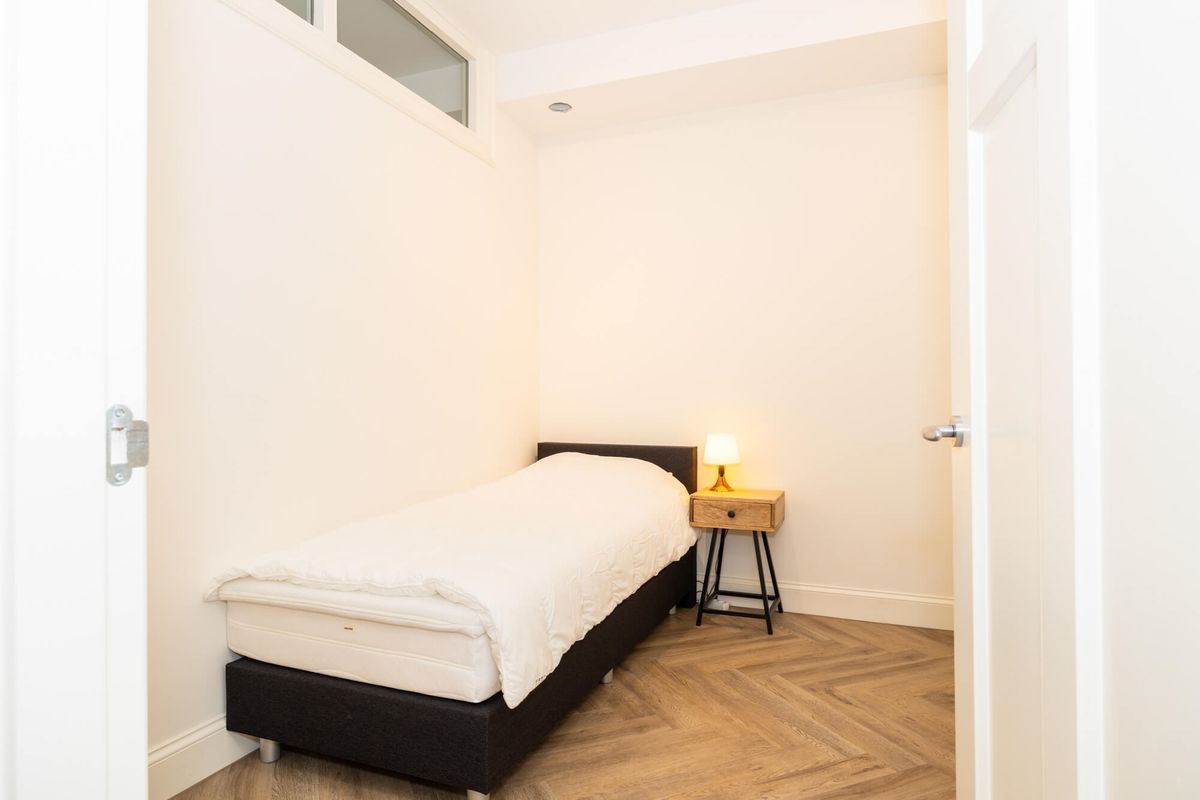 Aan de achterzijde van de woning zijn de drie slaapkamers gelegen, waarvan 1 kleine met kastenwand en twee grote slaapkamers met openslaande deuren naar de patiotuin. Beide hebben nog een inbouwkast waar je al je kleding in kwijt kan. De slaapkamers zijn tevens voorzien van lichte wanden en de visgraatvloer loopt hierin door vanuit de woonkamer.