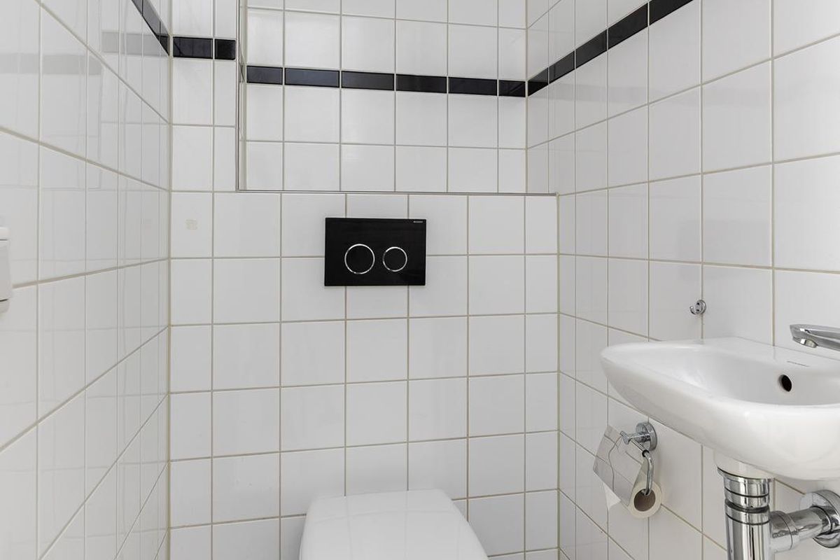 Vanuit de woonkamer bereik je de slaapkamer met badkamer ensuite. De badkamer is uitgevoerd met douche en wastafel: praktisch en klaar voor dagelijks gebruik. Nabij de entree is een separaat toilet.
