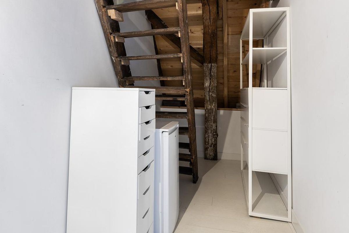 En dat merk je direct zodra je binnenstapt. Achter de monumentale gevel schuilt een speels ingedeeld appartement met een woonlaag en een royale bergzolder. De combinatie van hoge balken, lichte ruimtes en historische details zorgt voor een sfeer die je niet snel ergens anders vindt.