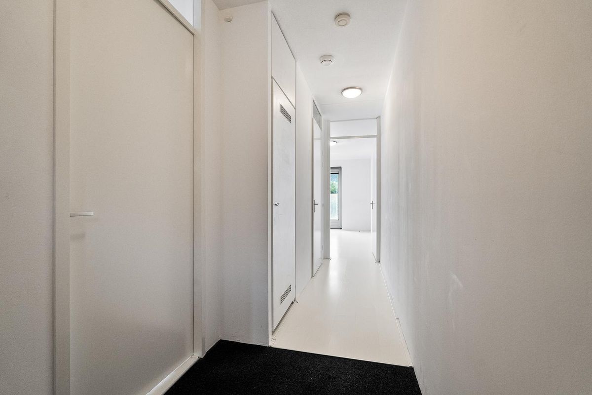 Op de begane grond vind je een lichte en ruime woonkamer op het westen met openslaande deuren naar het terras. Een luxe keuken met een kunststof aanrechtblad, combimagnetron, 4-pits gaskookplaat, RVS afzuigkap, koelkast met vriesvak, vaatwasser en voldoende kastruimte. Aansluitend aan de keuken treft u de bijkeuken/technische ruimte met een wasmachine- en wasdroger-aansluiting, de c.v.-opstelling en de WTW unit. De hoofdentree is aan de oostzijde met de meterkast en toegang tot de slaapkamer. De badkamer is voorzien van een toilet, wastafelmeubel en douche. Verder treft u op de begane grond de centrale hal van het complex met de postbussen en is er ene toegang tot een gang met daar de bergingbox/fietsenberging.