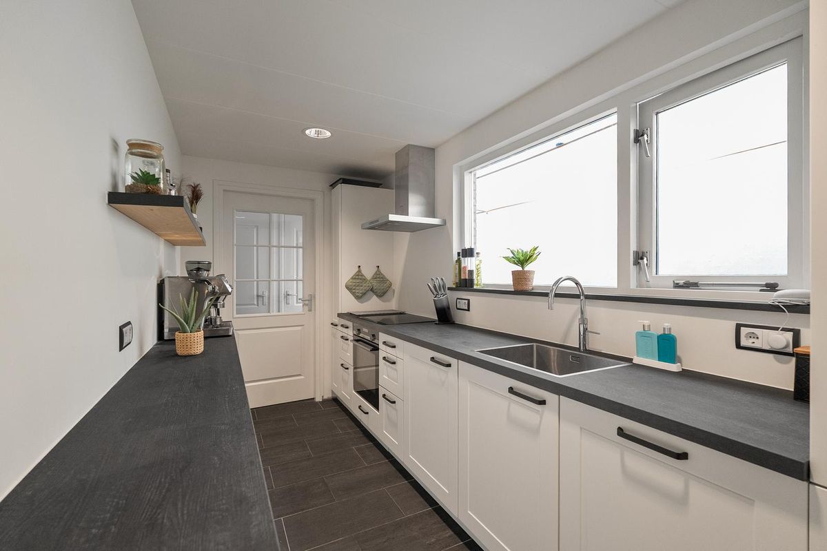 Auto vrije straat, hal met meterkast, heerlijke lichte en sfeervolle woonkamer met openslaande tuindeuren naar de achtertuin en ruime luxe keuken met veel kastruimte en een elektrische kookplaat, afzuigkap, oven, vaatwasser, koel/vriescombinatie en Quooker. Er is een aparte ruimte voor wasmachine en droger en modern toilet.