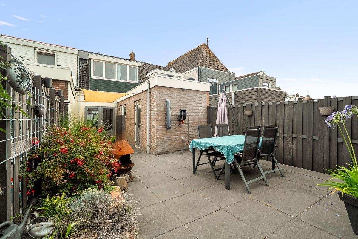 De achtertuin is mooi bestraat, voorzien van een plantenborder, heeft een ruime berging met elektra en is gericht op het zonnige zuid/westen. Er is ook een achterom naar een afgesloten steeg, enkel voor bewoners toegankelijk