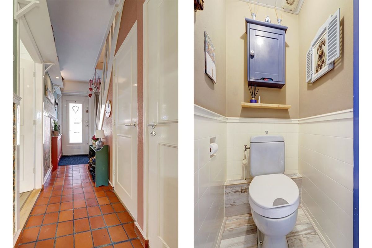 Bij binnenkomst voel je meteen de sfeer. De hal geeft toegang tot het toilet, de kelderkast en de trap naar boven. Vanuit hier loop je door naar zowel de keuken als de woonkamer.