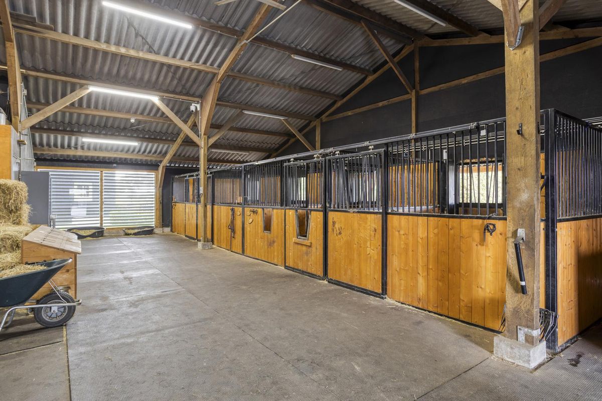 Voor paardenliefhebbers is dit een echte droomlocatie: het terrein beschikt over een professioneel aangelegd paardencomplex met stallen, stapmolen, rijbak, longeercirkel en ruime paddock, omgeven door goed onderhouden weilanden.