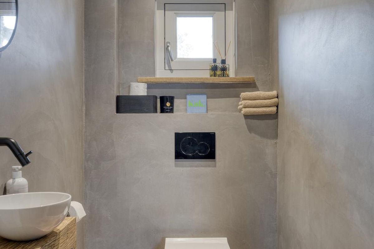 Het separate toilet is voorzien van beton cire en een hangcloset en fontein.