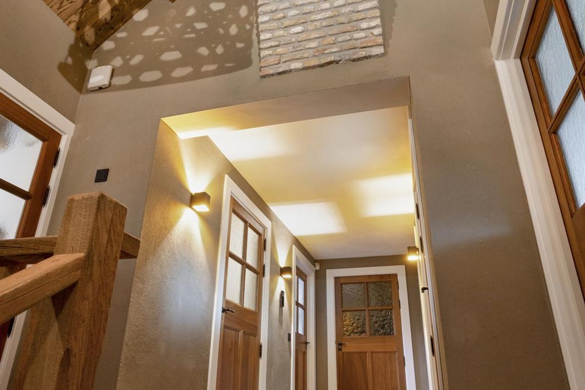 houten balken en dakplaten waardoor een unieke, sfeervolle woning is gecreëerd;