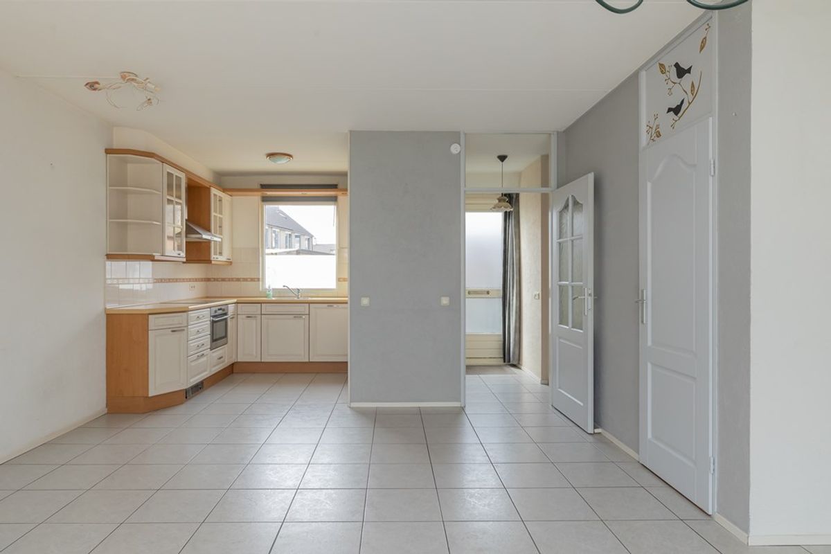 Entree, hal met de meterkast en de toiletruimte met een fonteintje. De aangenaam lichte en op de tuin gerichte woonkamer heeft een lichte plavuizen vloer en een open keuken aan de voorzijde met diverse inbouwapparatuur zoals een combimagnetron, een inductie kookplaat met afzuigkap, een vaatwasser, een vriezer, een koelkast en kickspace verwarming. De tuin is achterom en via de woonkamer te bereiken.