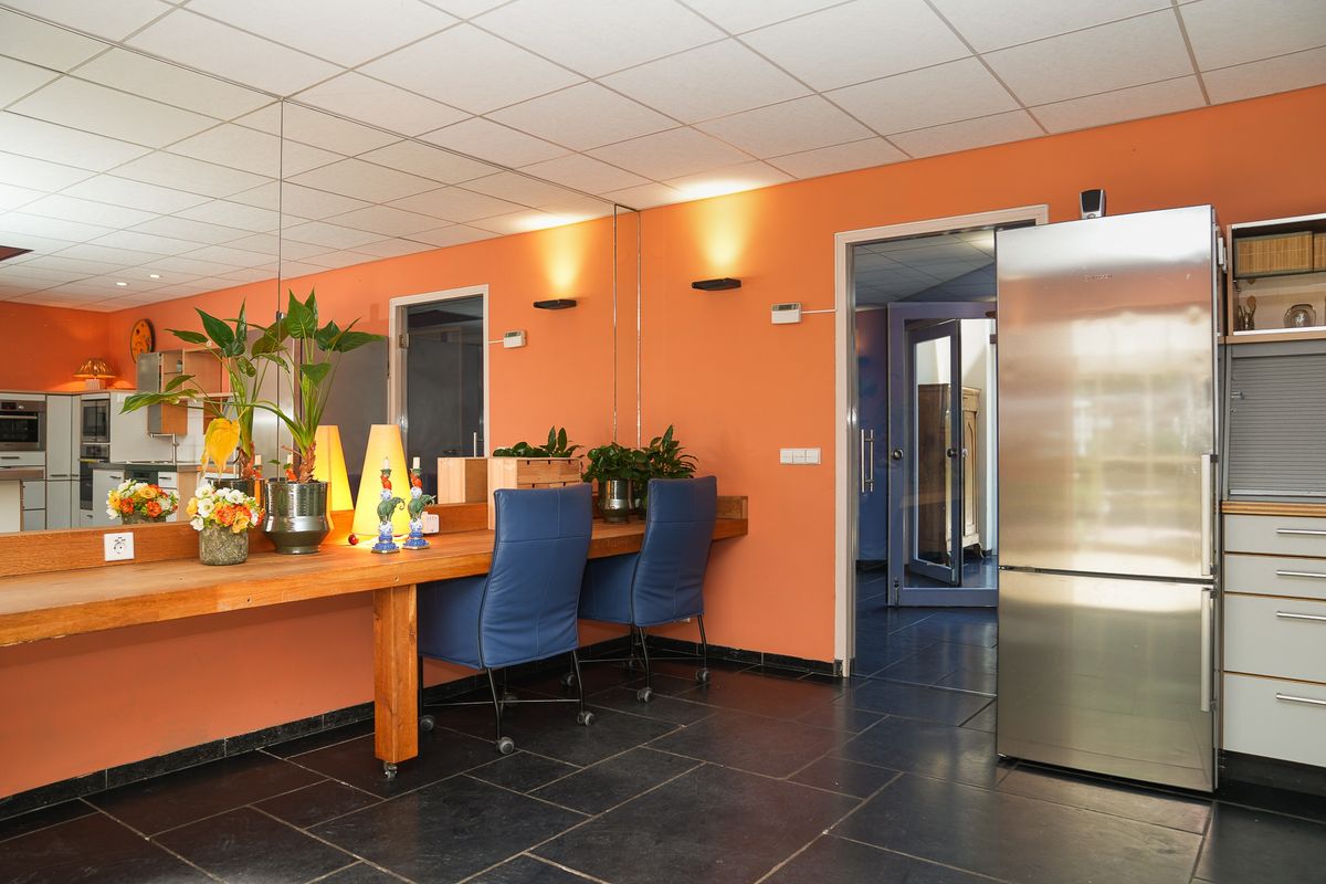 De keuken is ruim opgezet en vormt het kloppend hart van het woonhuis. Centraal staat een groot kookeiland. De keuken is semi-professioneel ingericht en van alle gemakken voorzien: een stoomoven, magnetron, aparte oven, warmhoud-lade, grote inductiekookplaat én een geïntegreerde wokbrander bieden alle ruimte voor koken op niveau. Daarnaast is onder een afneembare aanrechtblad ook een grilplaat en een frituur met onder-afzuigkap aangebracht. Tevens ruimte voor professioneel koffie en thee zetten met o.a. een extra kraan met omgekeerde osmose water speciaal voor thee zetten. De opstelling is strak en functioneel, met hoogwaardige apparatuur en een efficiënte indeling die iedere kookliefhebber zal aanspreken.
