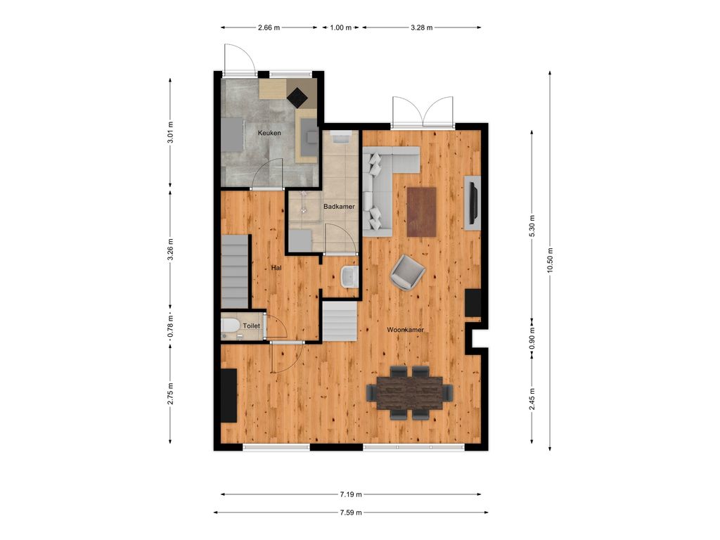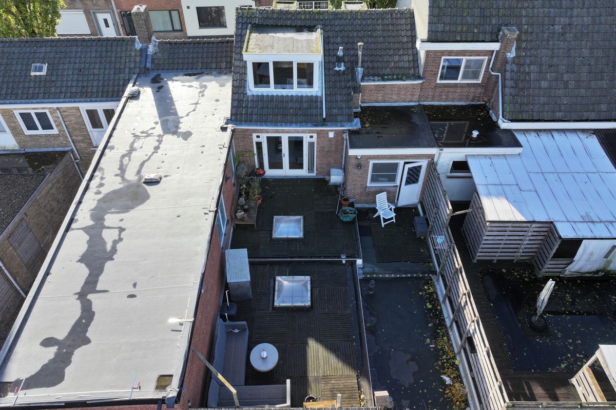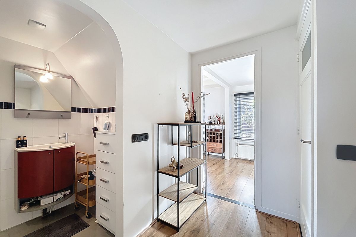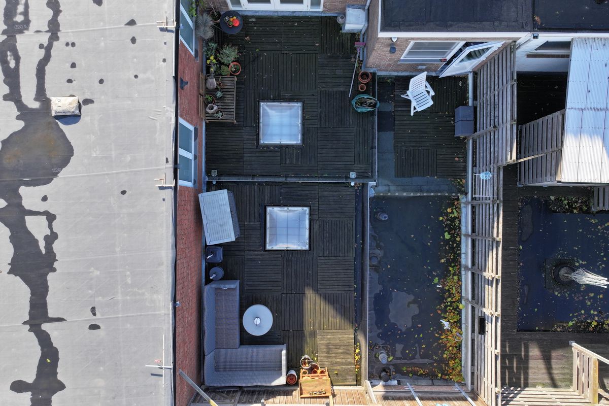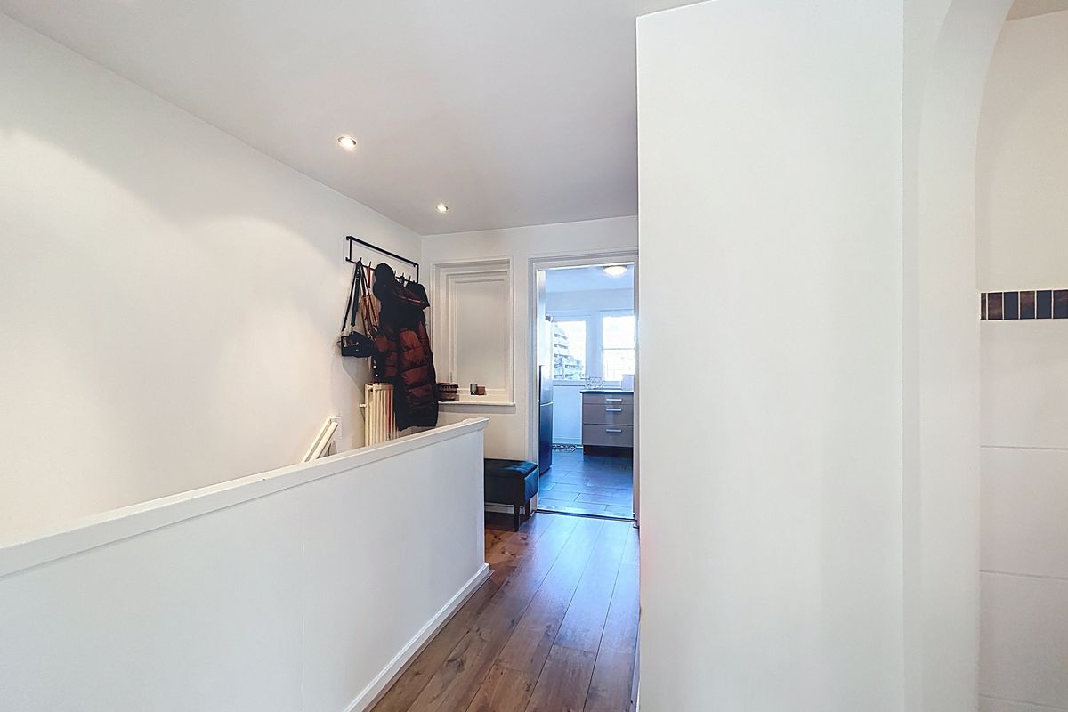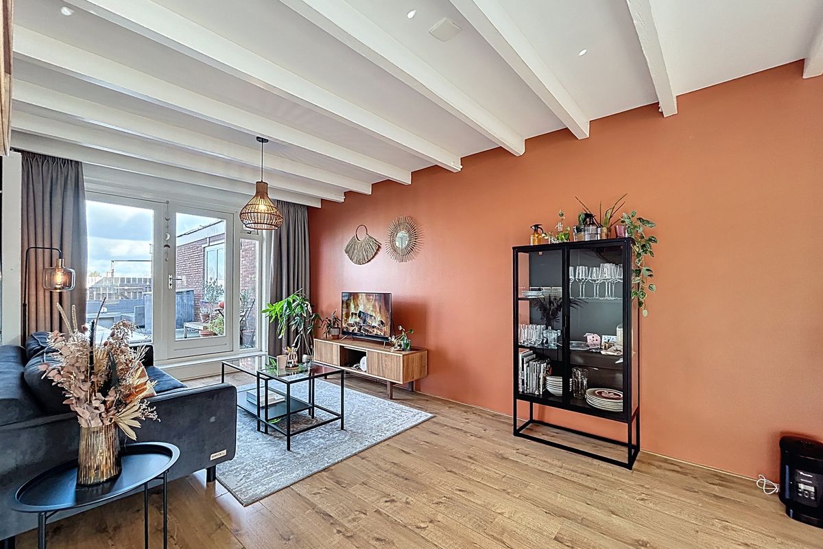Je betreedt het appartement via de eigen (nieuwe kunststof) voordeur op de begane grond. Via de lange gang en de gestoffeerde trap wordt de eerste verdieping betreden waarop het woongedeelte van het appartement is gelegen. De hal waarop je uitkomt biedt toegang tot de keuken, badkamer, het toilet en de ruime woonkamer. De grootste ruimte van het pand is de woonkamer. Hier is alle ruimte voor een eetgedeelte met zespersoons tafel, opbergkasten en een woongedeelte met hoekbank. In het woongedeelte bieden de openslaande tuindeuren toegang tot het 68 m² grote dakterras. Heerlijk om wagenwijd open te zetten en de frisse lucht op een warme zomeravond binnen te laten waaien. De gesloten keuken is geplaatst in de aanbouw met inbouwapparatuur als een oven, elektrische kookplaat, afzuigkap, spoelbak en voldoende opbergruimte. Ook via de keuken kan je het dakterras betreden. Ook deze kozijnen zijn vernieuwd. Op deze verdieping vindt je tevens het toilet en de badkamer met 2 wastafels, douchecabine en wasmachineaansluiting.