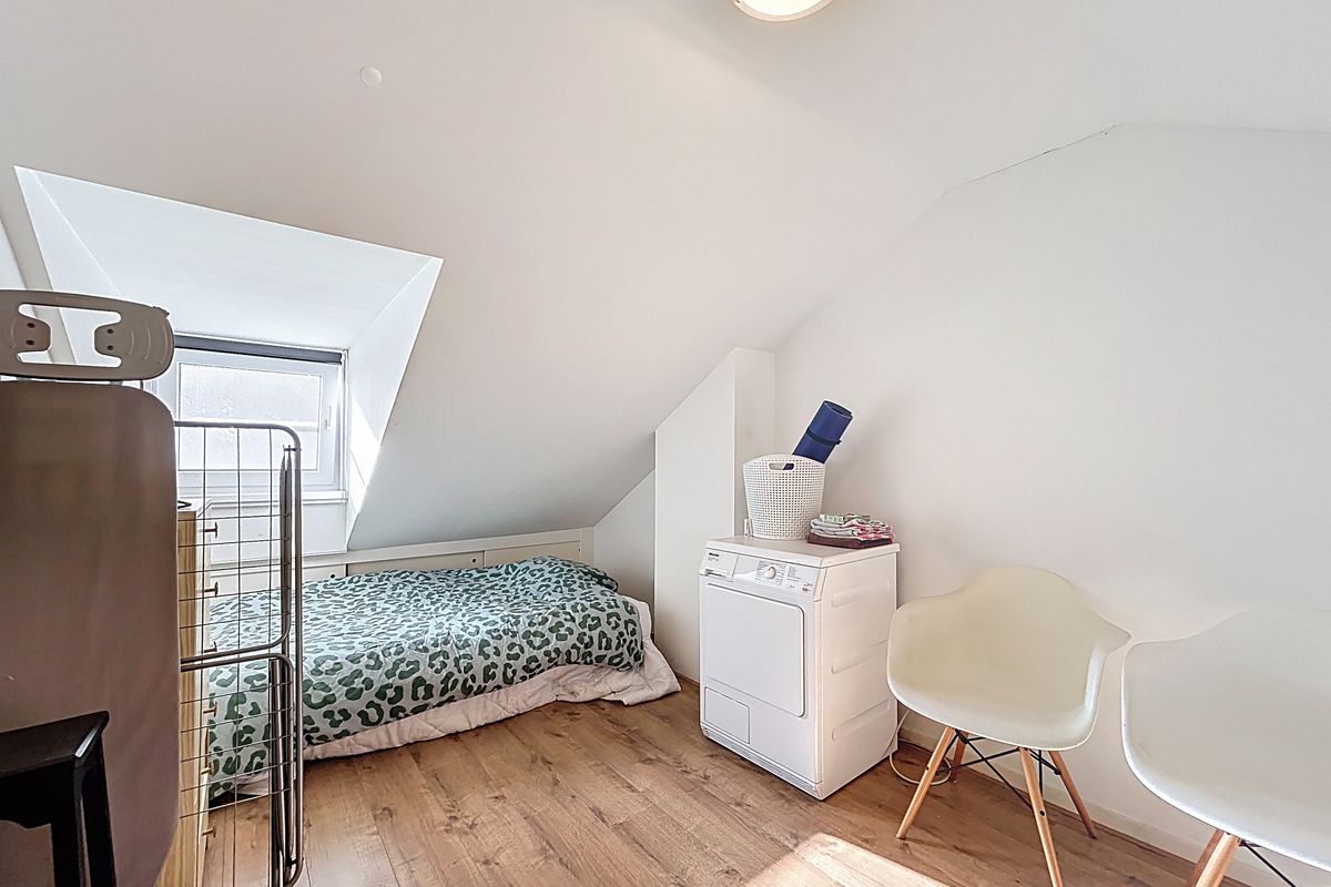 De tweede verdieping wordt betreden middels de open trap vanuit de woonkamer. Op de overloop van deze verdieping heb je toegang tot de 2 slaapkamers en een luik naar de HR CV-combiketel van Vaillant uit 2011. De slaapkamer links is een leuke kinderkamer of logeerkamer met ruimte voor een 2-persoonsbed en een kleine kledingkast. De master bedroom is aan de rechter kant gelegen en krijgt aanzienlijk meer ruimte dankzij de grote kunststof dakkapel die over de gehele breedte van de kamer is geplaatst. Hierdoor heb je alle ruimte voor een 2-persoonsbed, kledingkast en bureau.