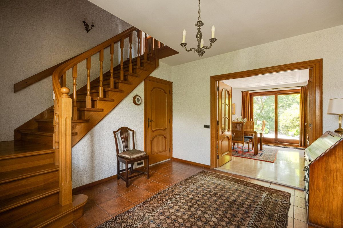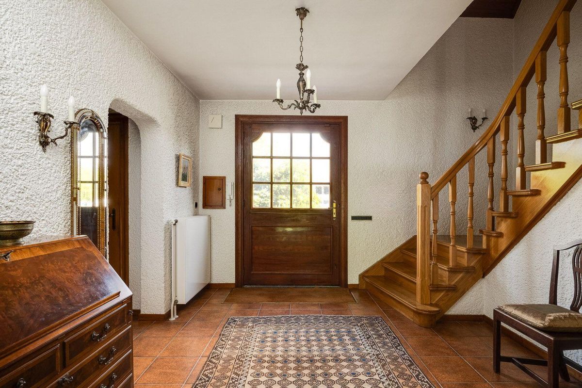 Royale ontvangsthal met vide en trapopgang naar de eerste verdieping. Vanuit de hal zijn living en de bijkeuken te betreden. De hal is ruim opgezet en zorgt voor een prettige ontvangst. Er is een verdiepte trapkast en een apart gedeelte voor de garderobe, waar zich tevens de toiletruimte bevindt. De toiletruimte is voorzien van een closet en