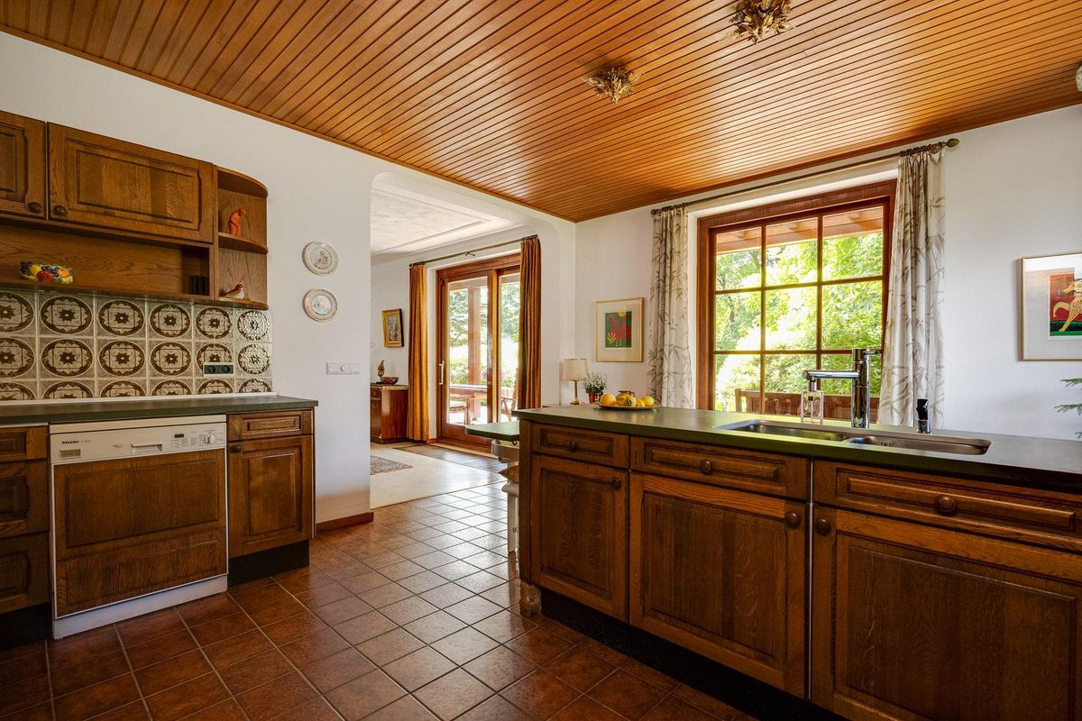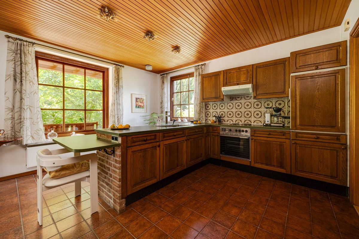 het groen. Vanuit de keuken is er een doucheruimte en een ruime bijkeuken bereikbaar.