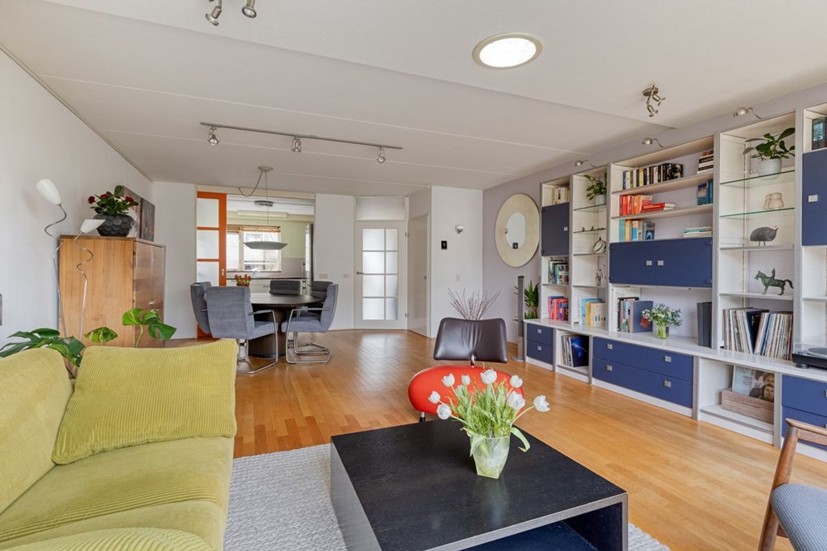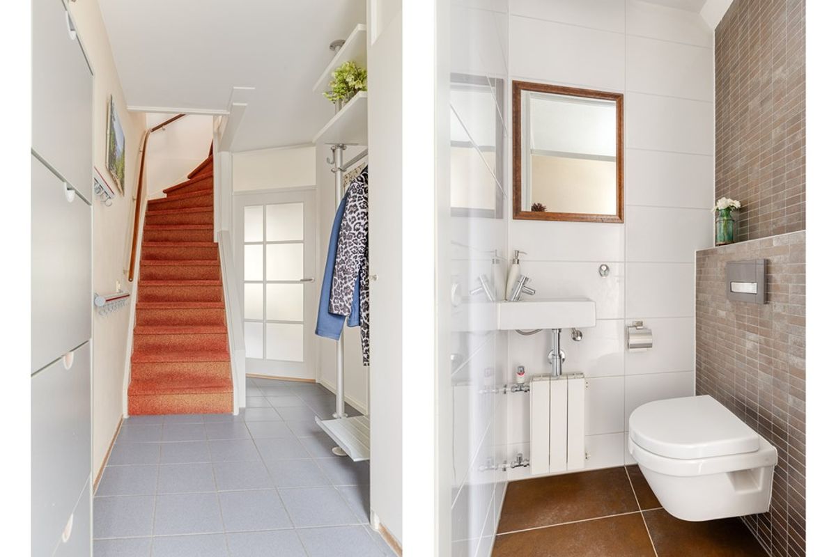 Via de verzorgde voortuin loop je naar binnen en kom je in de ruime hal met garderobe, meterkast en een modern toilet met fonteintje. Vanuit hier stappen we door naar de woonkamer. En daar voel je het meteen: dit is een fijne leefruimte. De woning is aan de achterzijde uitgebouwd en dankzij de Solartube valt er extra daglicht precies daar waar je het wilt hebben. De schuifpui en achterdeur zorgen voor een mooie verbinding met buiten. Maar dat straks.