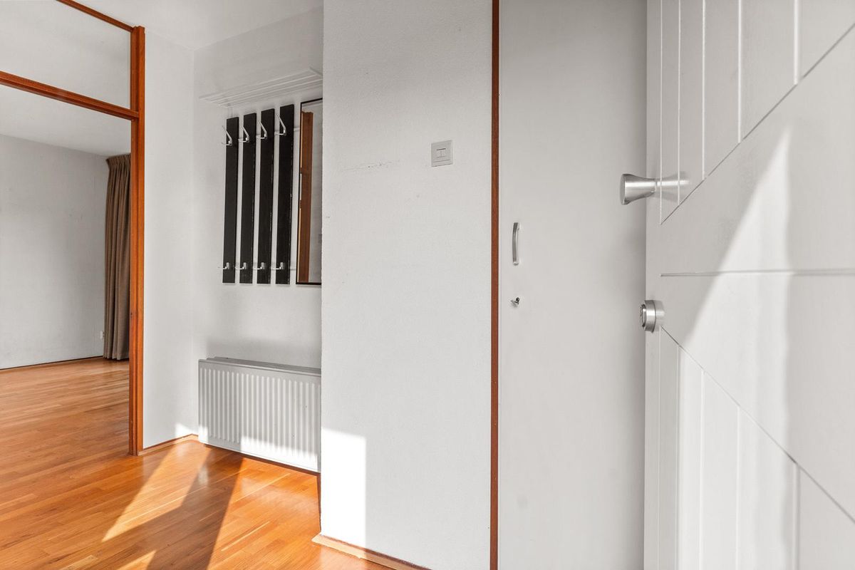 Binnenkomst in de hal met toegang tot de meterkast, toilet, woonkamer en trapopgang naar de eerste verdieping.