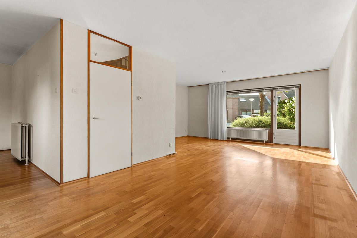 De woonkamer heeft een speelse indeling met een leuk zitgedeelte aan de voorzijde en de open keuken aan de achterzijde. Door de vele en grote raampartijen is de woonkamer heerlijk licht te noemen. De raampartij bij het zitgedeelte aan de voorzijde heeft een loopdeur naar de voortuin.