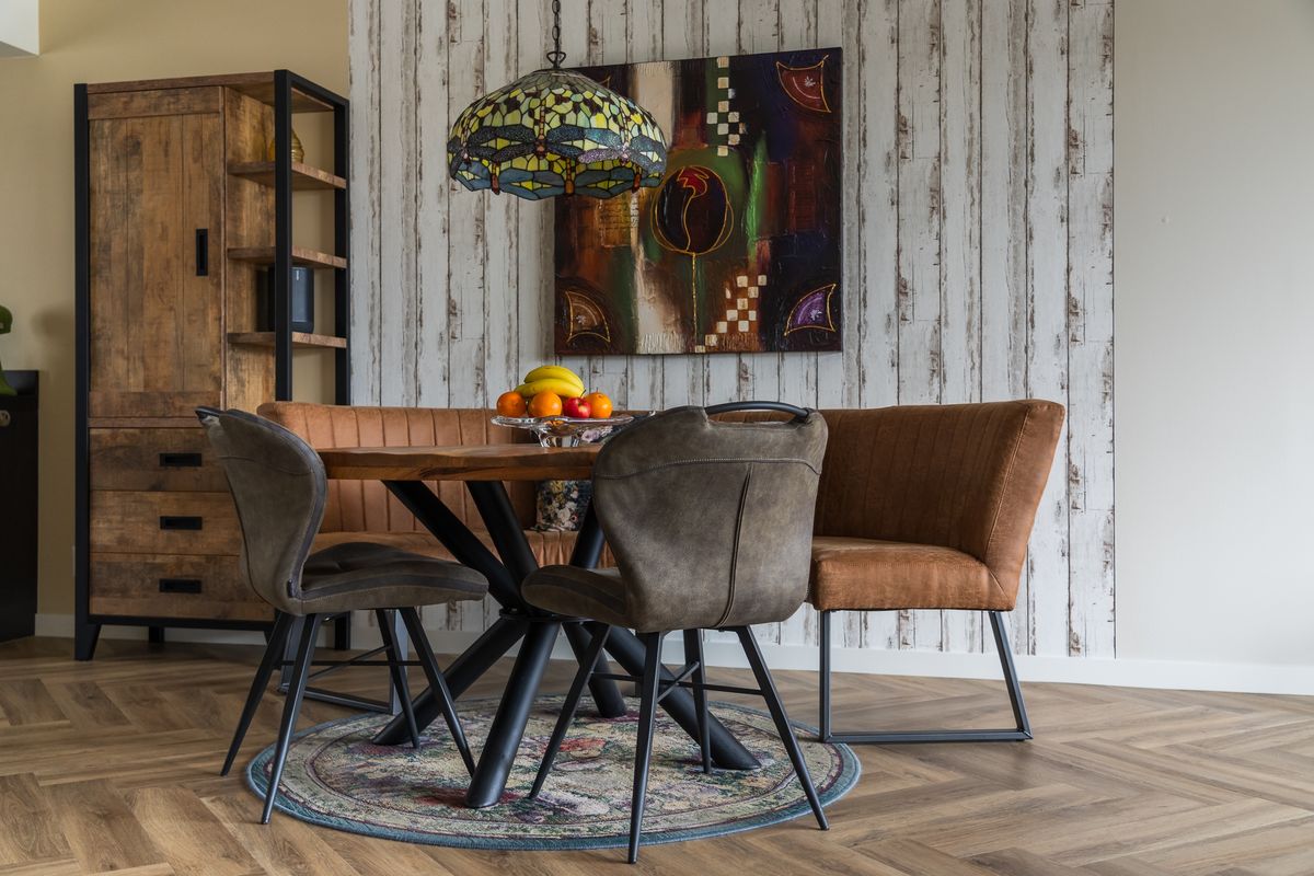 Wanneer je binnenkomt in de ruime hal, merk je direct hoe zorgvuldig dit huis is afgewerkt. De visgraat pvc-vloer in eikenlook en de glad gestucte wanden geven meteen een moderne en warme uitstraling. Deze hoogwaardige afwerking loopt door over de gehele begane grond en eerste verdieping, waardoor er een prachtige eenheid ontstaat. In de hal vind je de meterkast, het toilet en de trapopgang naar de verdieping. De trap is bekleed met slijtvast vinyl en een antislipprofiel: praktisch én stijlvol. Het toilet is uitgevoerd met betonlook tegels, een zwart wandcloset en een fontein – helemaal passend bij de huidige trends.