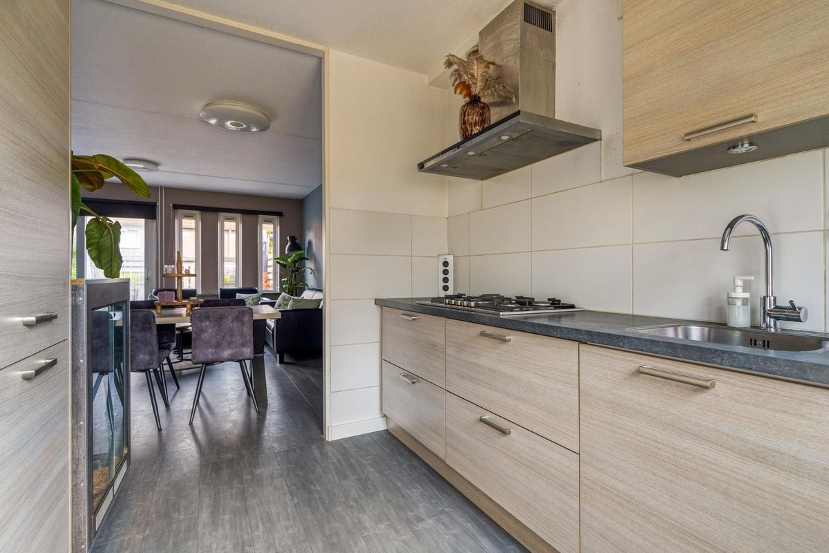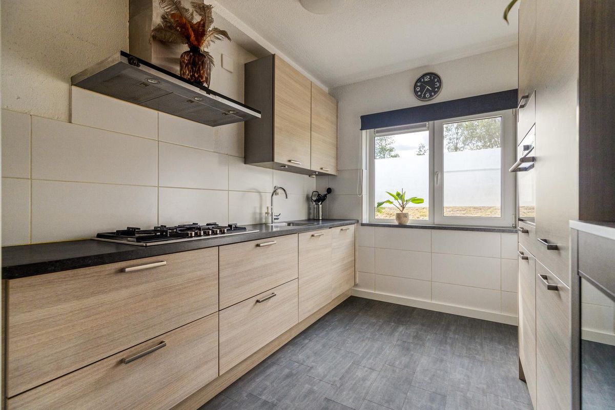 Bij binnenkomst bereik je de hal, voorzien van de meterkast en het toilet. Vanuit de hal leidt een trap naar de verdieping, terwijl je rechtdoor naar de woonkamer gaat. De woonkamer is een heerlijke, ruime plek waar je ontspannen kunt genieten met familie en vrienden. Dankzij de grote raampartijen geniet je hier van veel natuurlijk licht, terwijl de tuinzijde voor een optimale verbinding met buiten zorgt. De keuken bevindt zich aan de voorzijde van het huis en is voorzien van diverse inbouwapparatuur, zoals een oven, koelkast, vaatwasser en gasfornuis. De keuken biedt alle gemakken voor het bereiden van heerlijke maaltijden en staat garant voor plezierige kookmomenten.