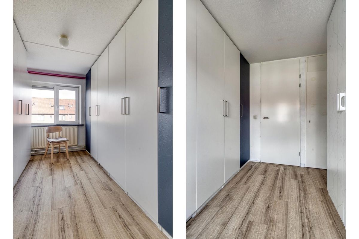 De overloop geeft toegang tot nog eens twee ruime slaapkamers. Aan de achterzijde bevindt zich een grote slaapkamer, compleet met een brede dakkapel die de kamer lekker licht maakt. Deze extra lichtinval zorgt voor een prettige sfeer en een gevoel van ruimte.