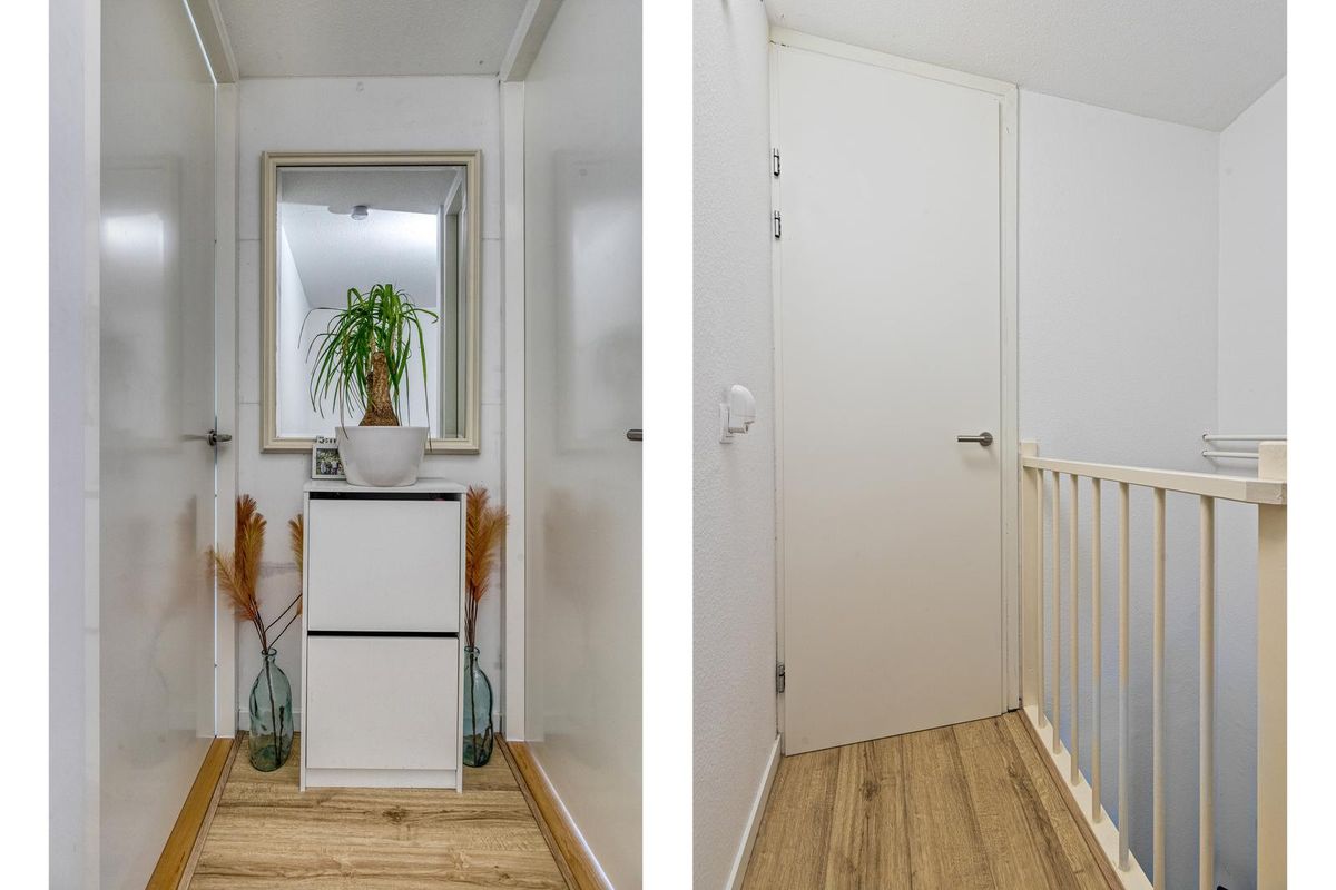 Op de overloop bevindt zich ook een aparte bergingsruimte, handig voor het opbergen van spullen en extra voorraad. In deze berging staan tevens de CV-ketel en de wasmachine, waardoor alles netjes en overzichtelijk is weggewerkt en gemakkelijk bereikbaar is.