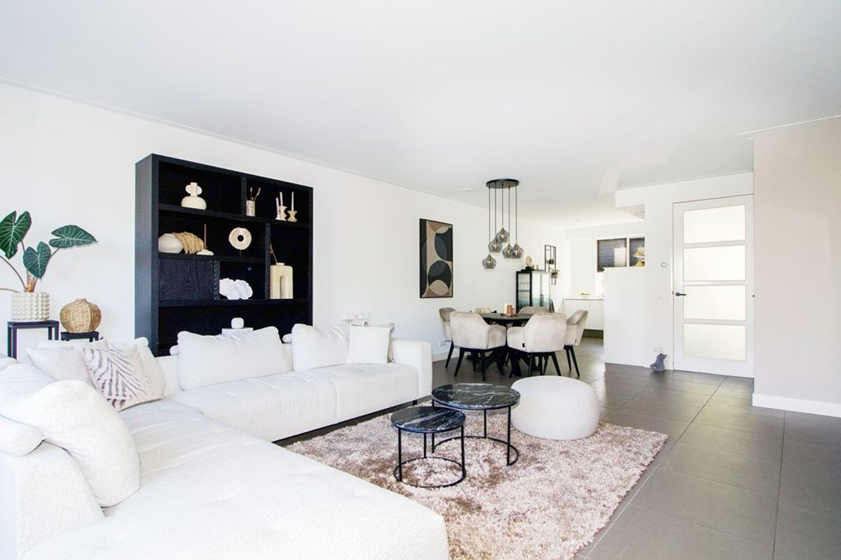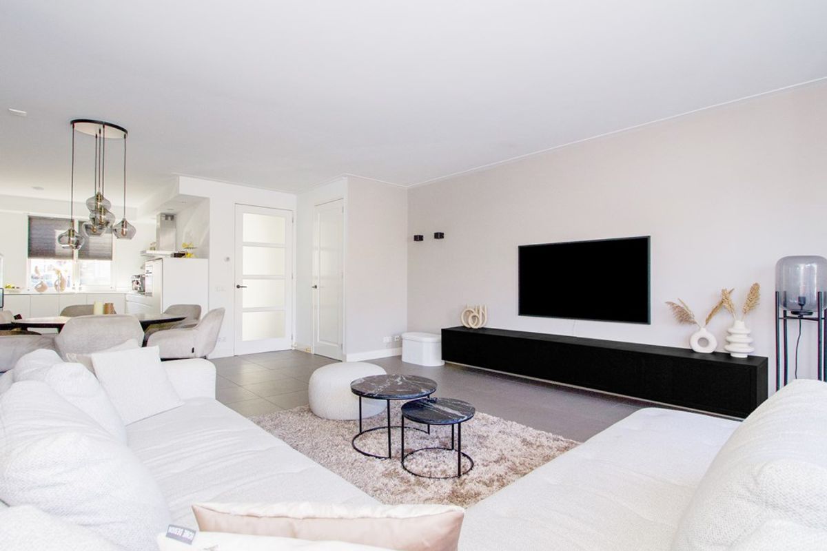 Binnen valt de ruimte direct op. Dankzij de uitbouw van 2,4 meter heb je een royale tuingerichte woonkamer waar licht en uitzicht de hoofdrol spelen. Er is volop plaats voor een grote eettafel, waardoor dit de plek wordt waar je samenkomt met familie en vrienden. De afwerking is modern en sereen, waardoor je hier zonder klussen direct kunt intrekken.