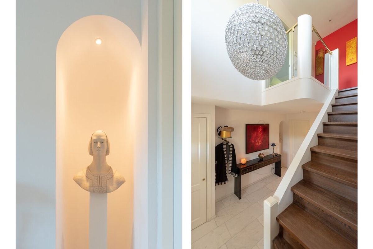 In het ruime en vooral hoge souterrain, met toegang door dubbele deuren naar een heerlijk beschut terras, is momenteel het atelier van de dame des huizes gevestigd, compleet met pantry en stockruimte voor haar schilderijen. Daarnaast is er een fantastische wijnkelder, een toilet, een bijkeuken, een inpandige berging en een grote hobbyruimte met daglichttoetreding. Het gehele souterrain is voorzien van Carrara marmer en drempelloos gelegd.