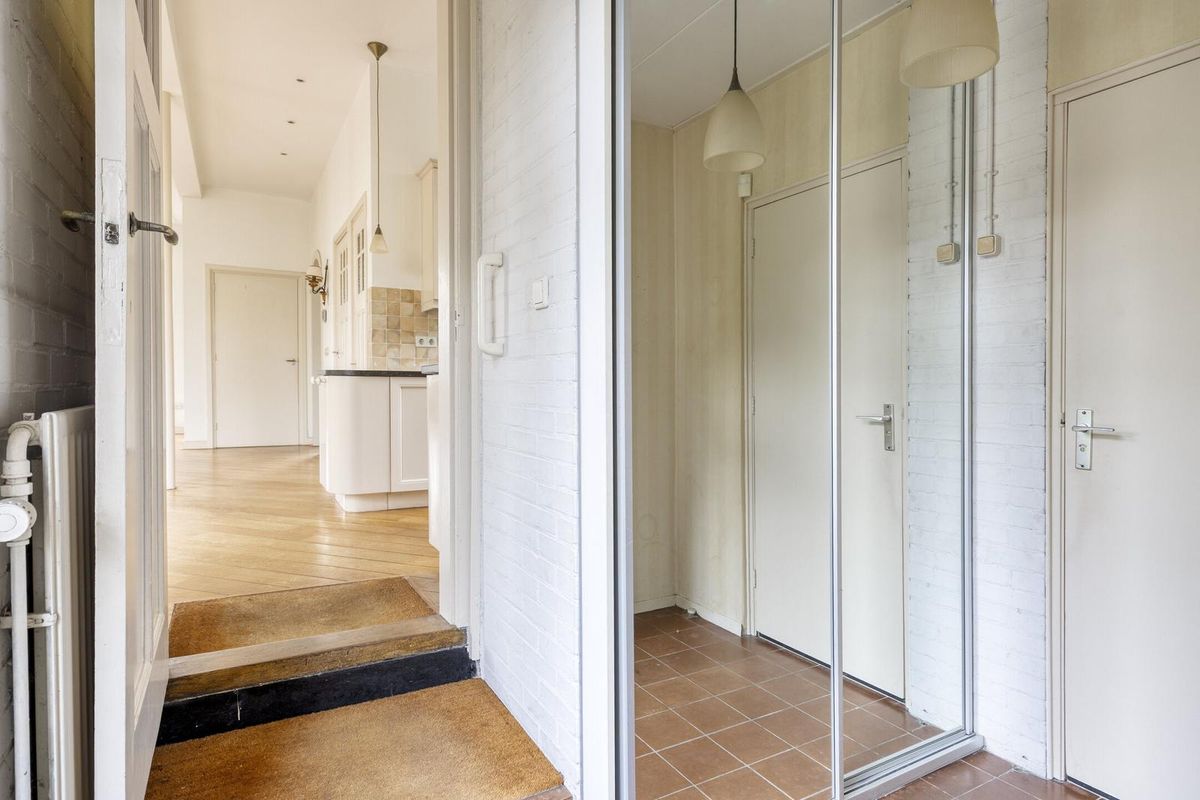 Binnenhal met een schuifkastenwand, toegang tot de achtertuin en trap naar de 1e verdieping.